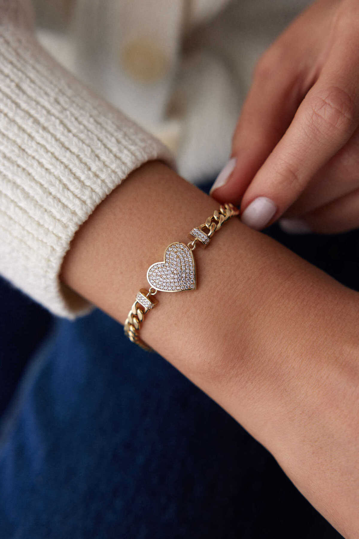 14 Ayar Altın Sıralı Kalp Bileklik 14 Ayar Altın Sıralı Kalp Bileklik YKKLY00001145 تک سایز