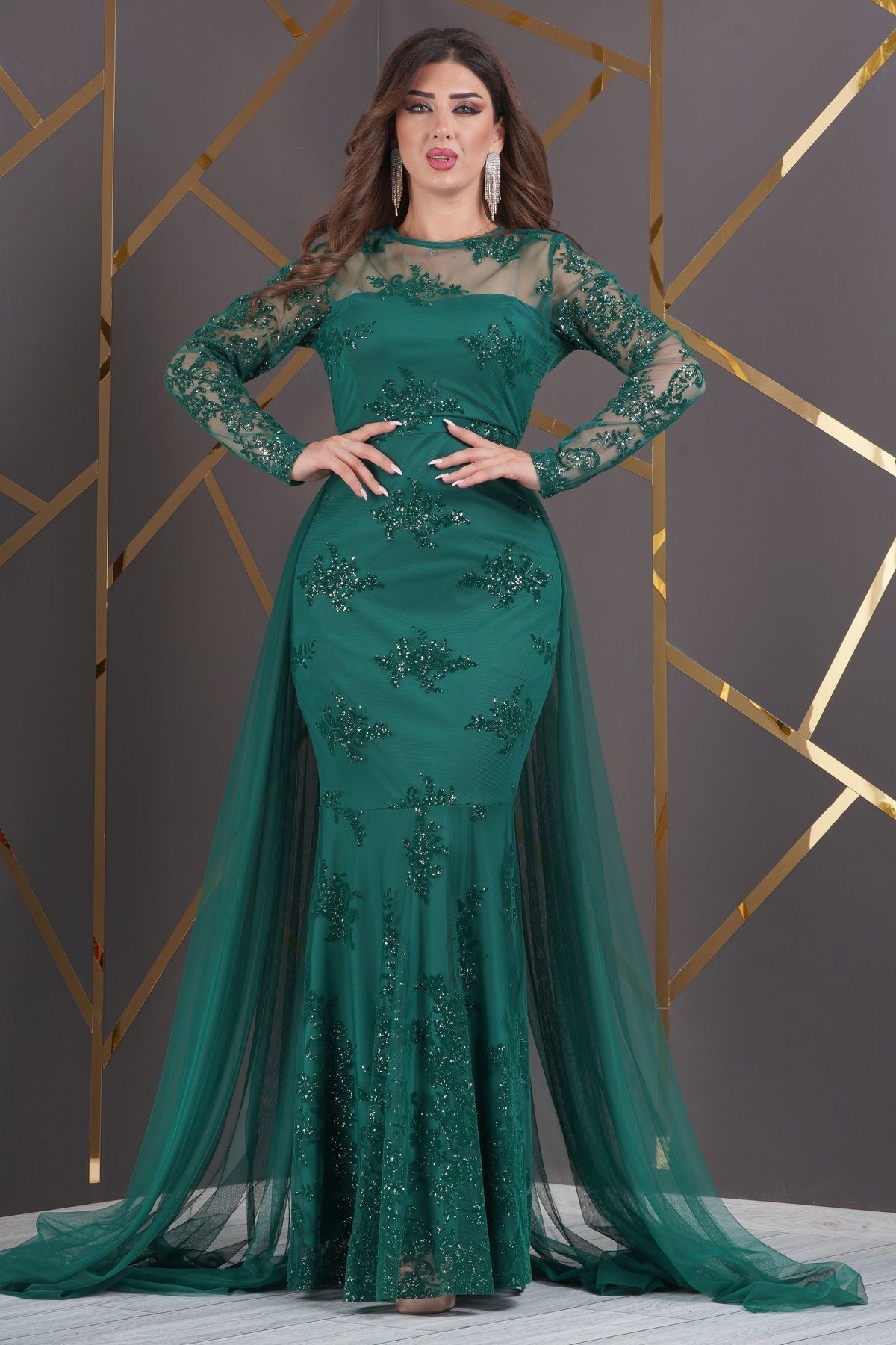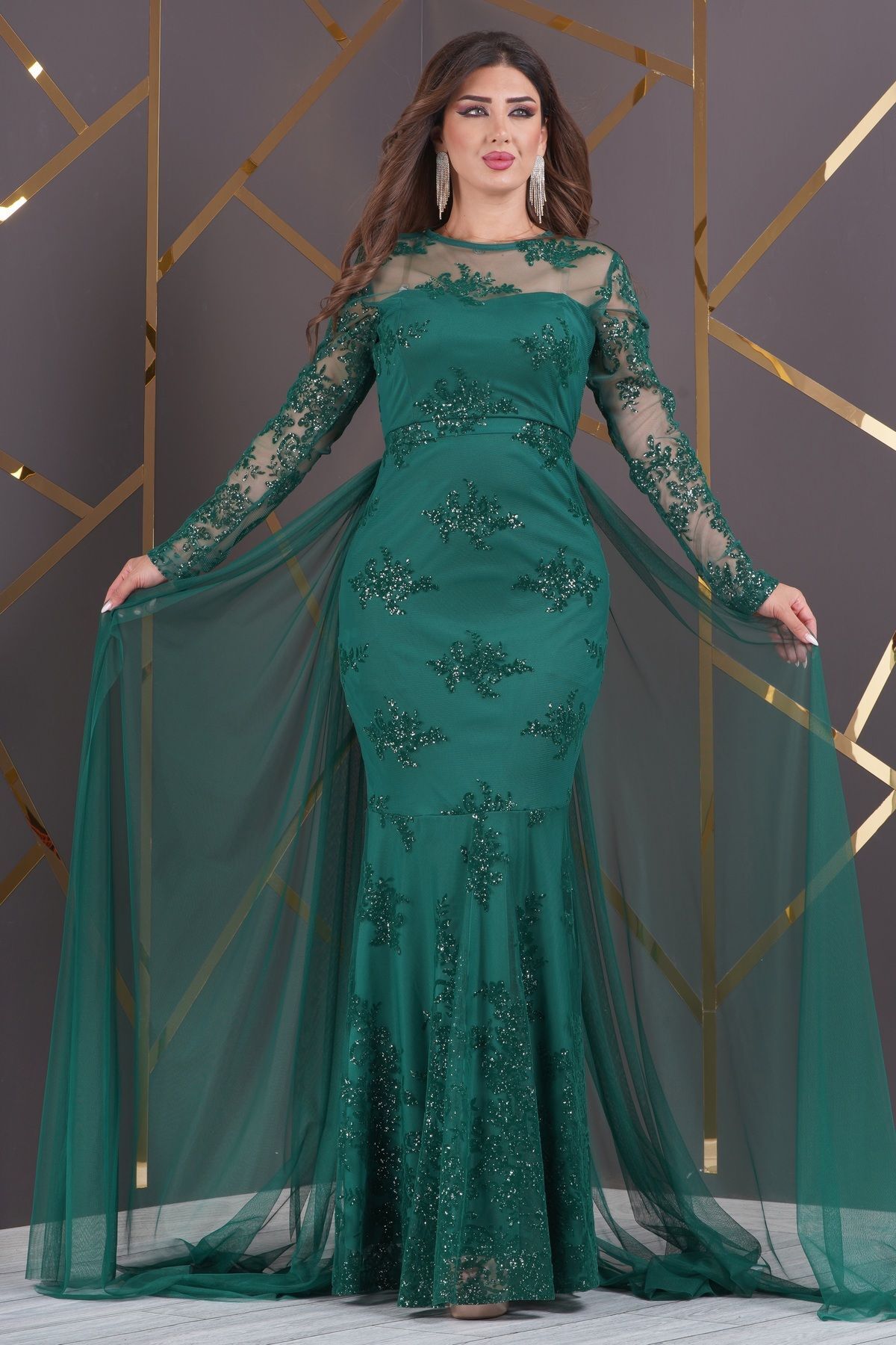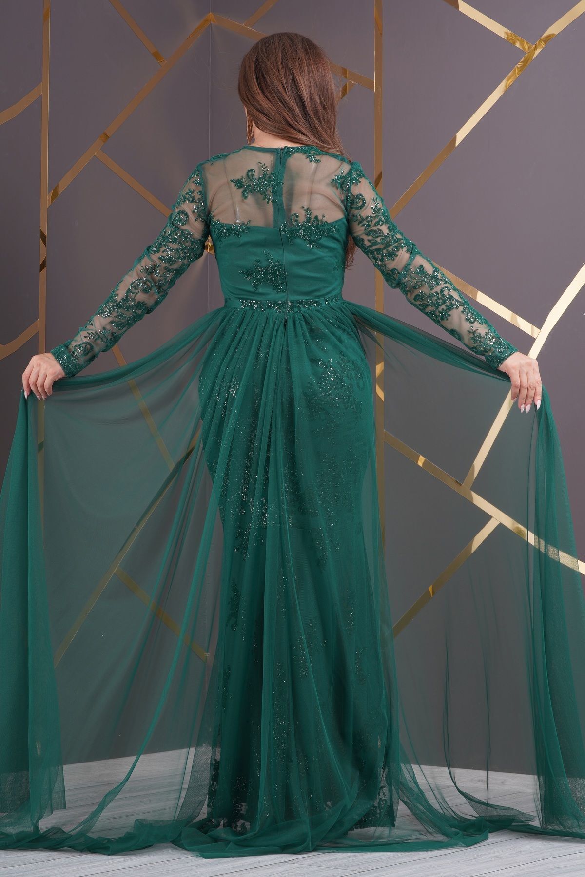 Özel Simli Flok Baskı Dantel Abiye Özel Simli Flok Baskı Dantel Abiye 7248 4XL