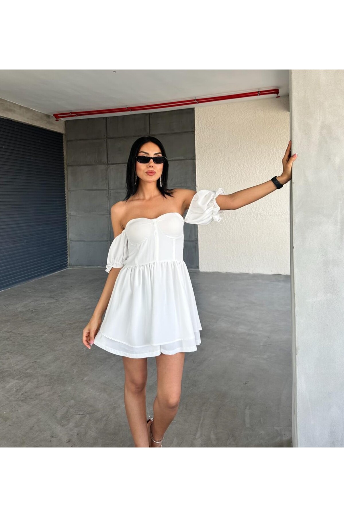 Straplez Siyah Madonna Yaka Krep Kumaş Şortlu Etek Mini Elbise Straplez Siyah Madonna Yaka Krep Kumaş Şortlu Etek Mini Elbise Shi500 L