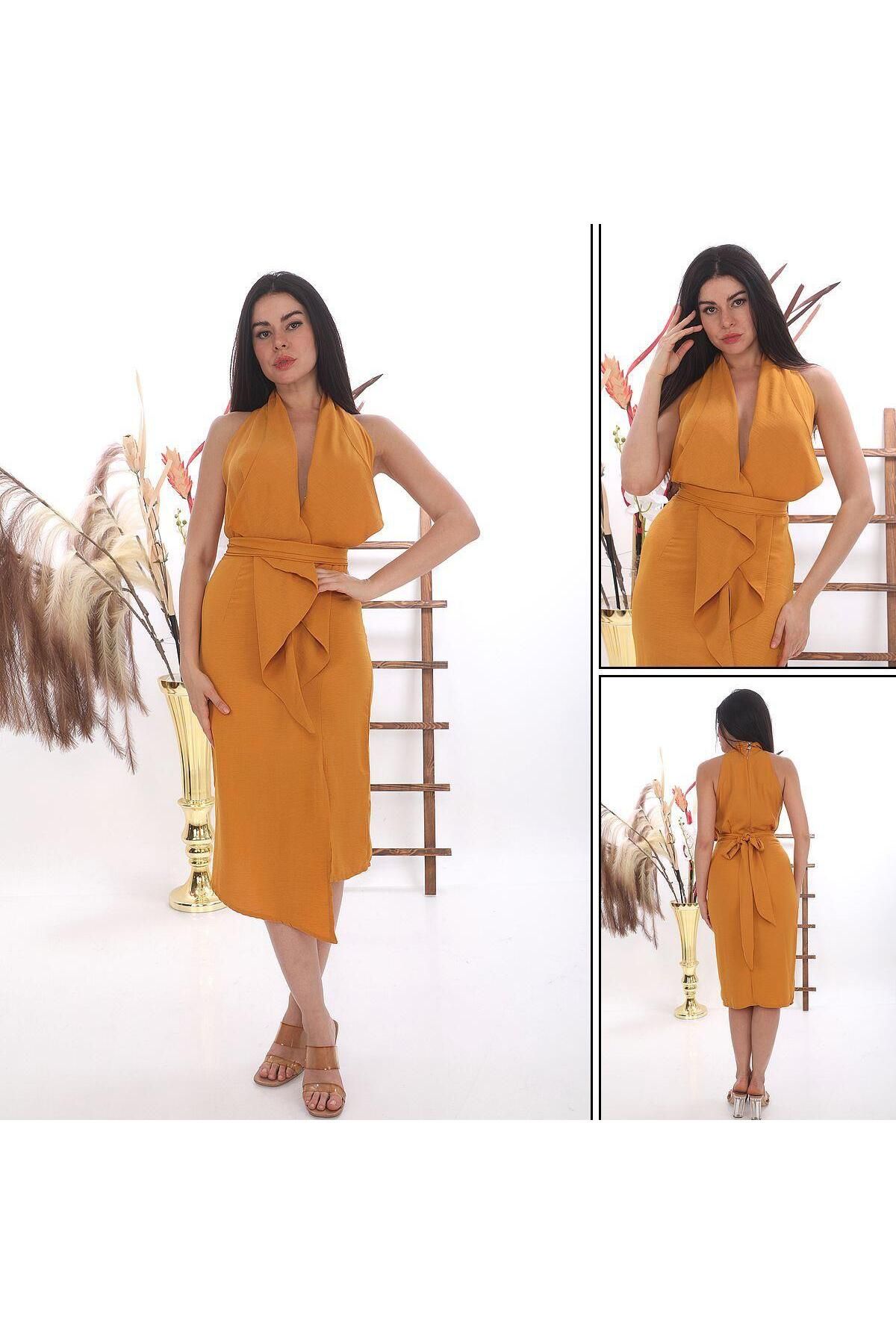 Boyundan Askılı Bel Bağlamalı Elbise Bordo Boyundan Askılı Bel Bağlamalı Elbise Bordo SM15 XL
