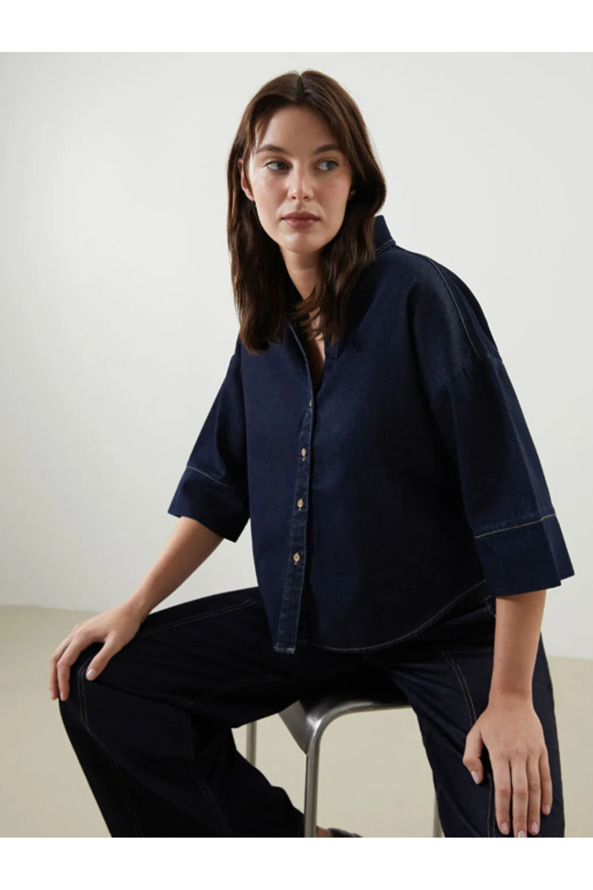 Mi İndigo Düğmeli Cep Detaylı Yarım Kollu Gömlek Mi İndigo Düğmeli Cep Detaylı Yarım Kollu Gömlek 8133İNG 44