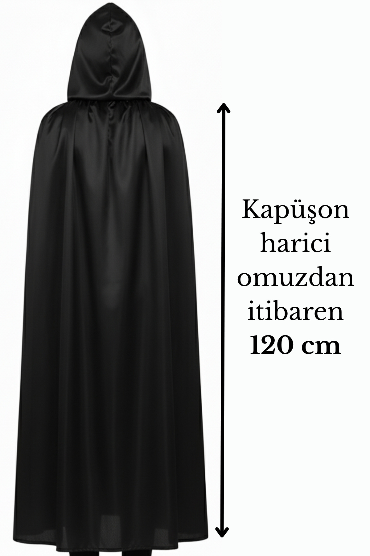 Siyah Kapüşonlu Halloween Pelerini 120 cm – Cadılar Bayramı & Maskeli Balo Drakula Pelerini Siyah Kapüşonlu Halloween Pelerini 120 cm – Cadılar Bayramı & Maskeli Balo Drakula Pelerini RLA064 تک سایز
