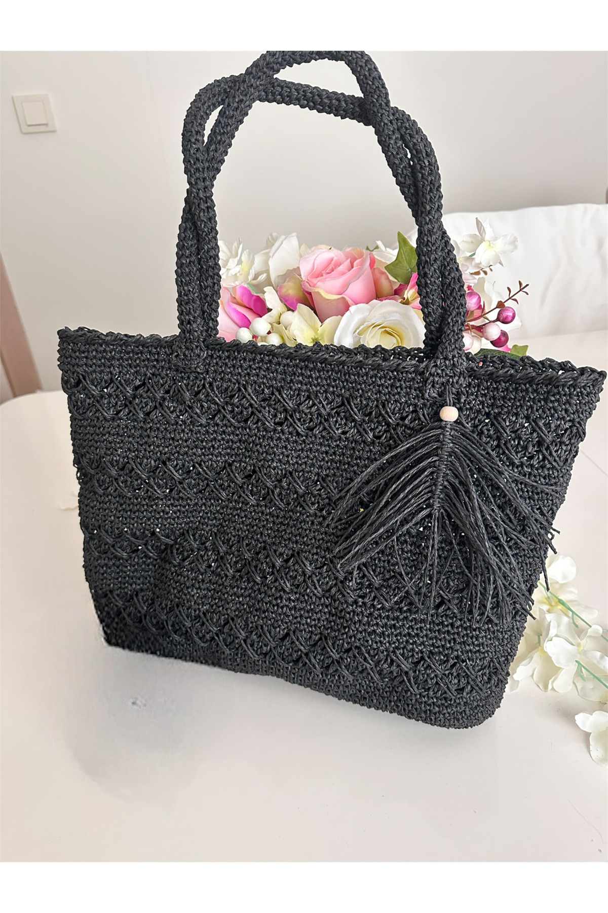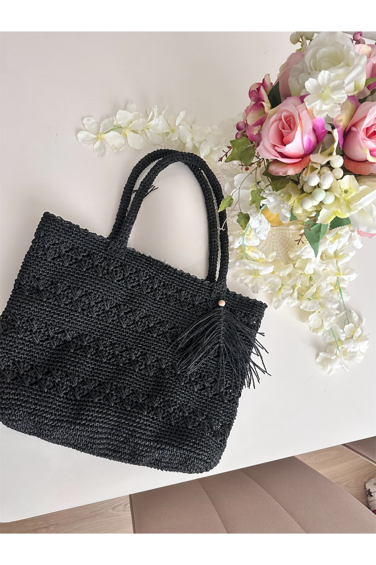 Bac Kağıt Ip El Örgüsü El Omuz Çantası Bac Kağıt Ip El Örgüsü El Omuz Çantası CNT0094 30 x 35