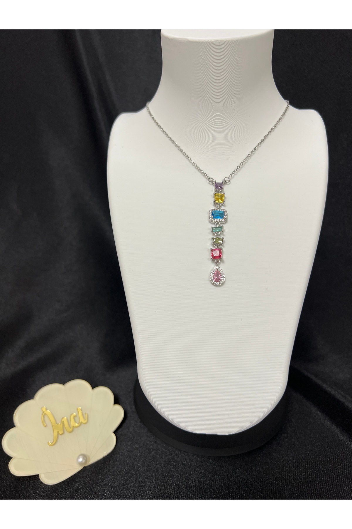 GÜMÜŞ SAÇAKLI OVAL BOLCUKLU KOLYE GÜMÜŞ SAÇAKLI OVAL BOLCUKLU KOLYE ELR0106 تک سایز