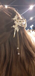 Zarif Sallantılı İncili Kelebekli Kadın Metal Mandal Toka Gold - Kristal Taşlı Topuz Saç Tokası Zarif Sallantılı İncili Kelebekli Kadın Metal Mandal Toka Gold - Kristal Taşlı Topuz Saç Tokası toka_0084 تک سایز