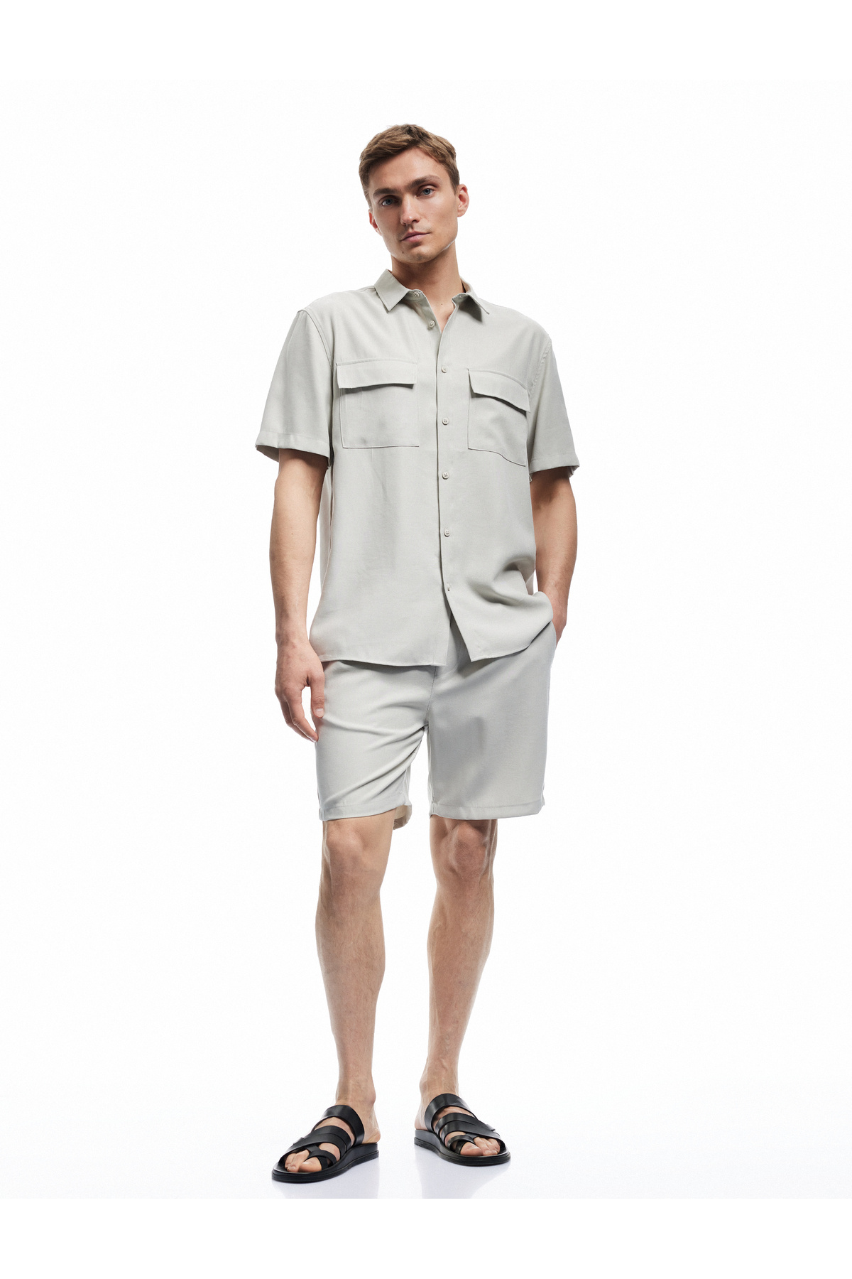 Bermuda Şort Chino Beli Bağcıklı Cep Detaylı Rayon Kumaş Bermuda Şort Chino Beli Bağcıklı Cep Detaylı Rayon Kumaş 4SAM40068HW 48