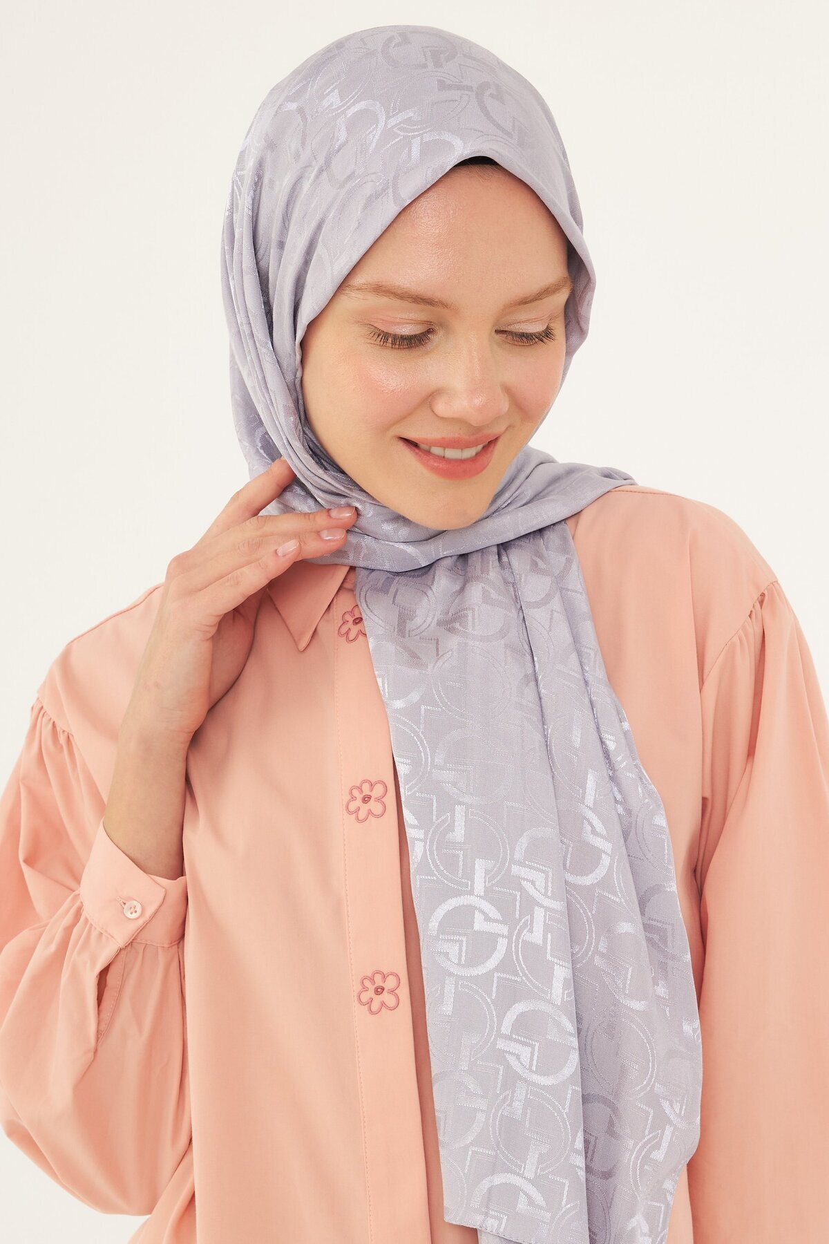Daka Desen Parlak Jakar Şal - Gümüş Daka Desen Parlak Jakar Şal - Gümüş DKPRLKJKR 75 x 185