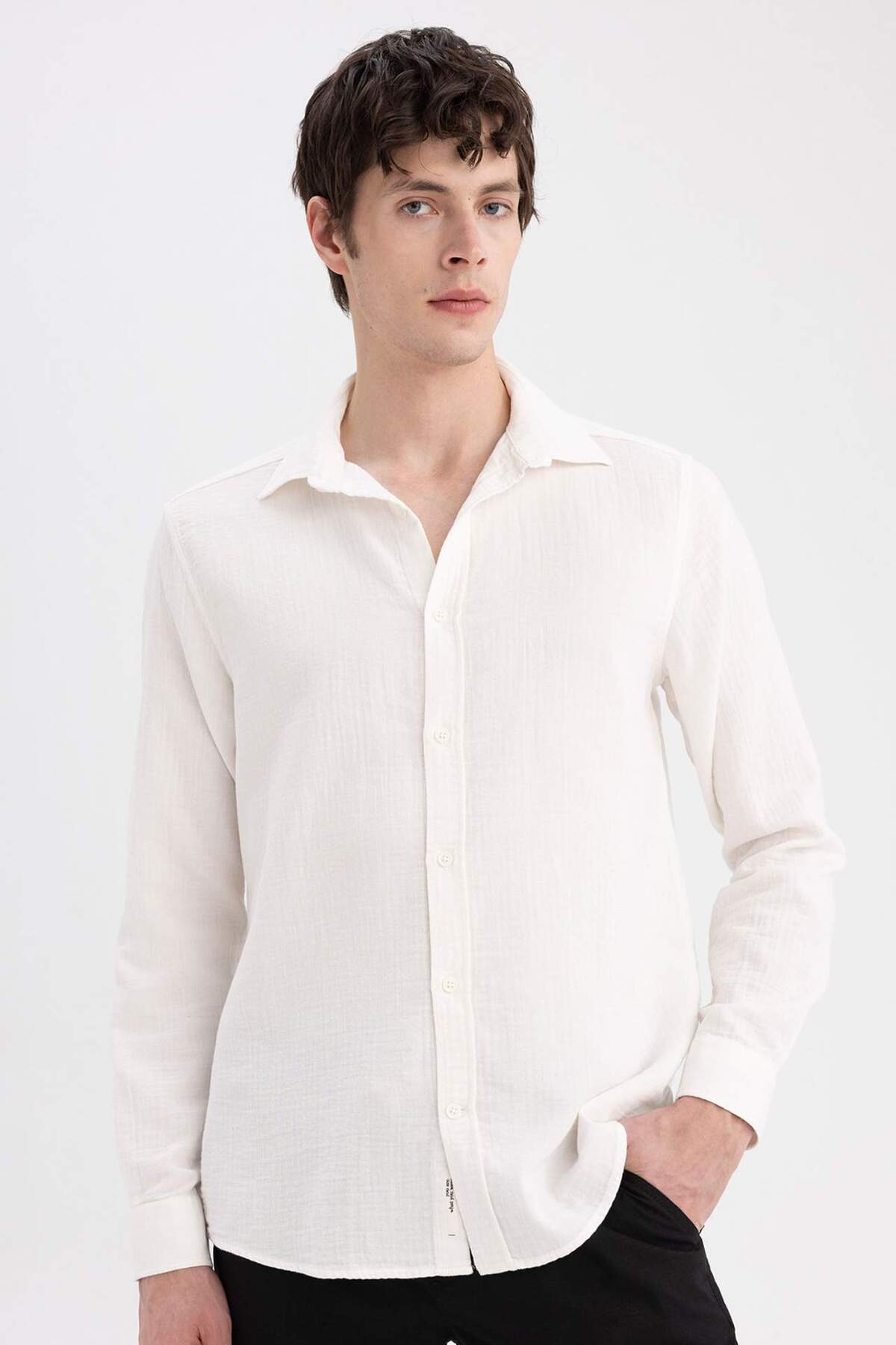 Relax Fit Polo Yaka Keten Karışımlı Pamuklu Basic Düz Uzun Kollu Gömlek C1106ax24sm Relax Fit Polo Yaka Keten Karışımlı Pamuklu Basic Düz Uzun Kollu Gömlek C1106ax24sm C1106AX24SM 2XL