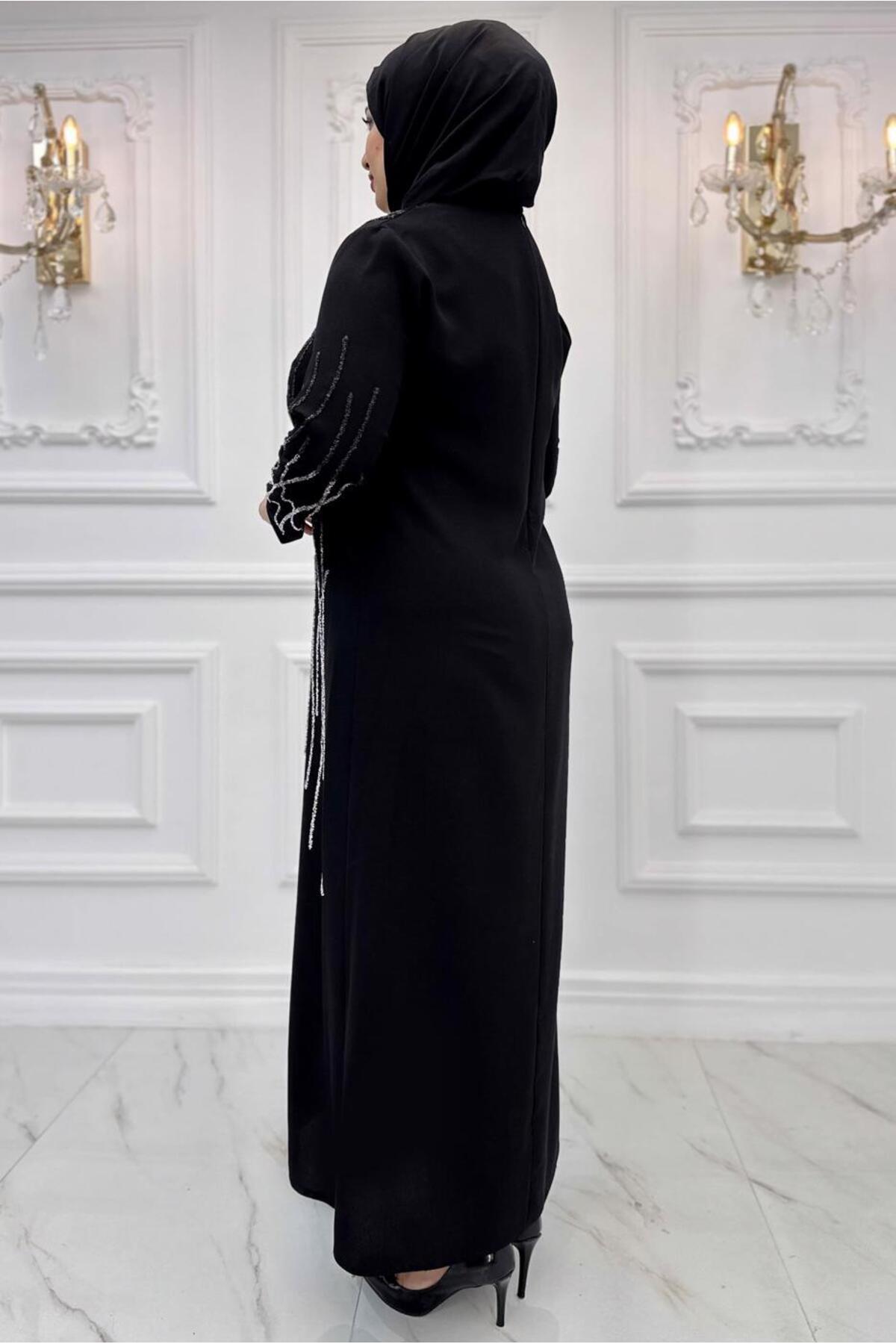 KADIN SİYAH TAŞLI BÜYÜK BEDEN ABİYE ELBİSE T 8031 KADIN SİYAH TAŞLI BÜYÜK BEDEN ABİYE ELBİSE T 8031 24YABLTR8031 56