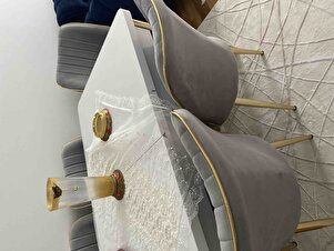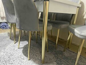 Parla Gold Serisi 80x130 MDF Masa + 6 Adet Silinebilir Kumaş A gri Sandalye Metal Ayak Masa Takımı Parla Gold Serisi 80x130 MDF Masa + 6 Adet Silinebilir Kumaş A gri Sandalye Metal Ayak Masa Takımı parlagold تک سایز