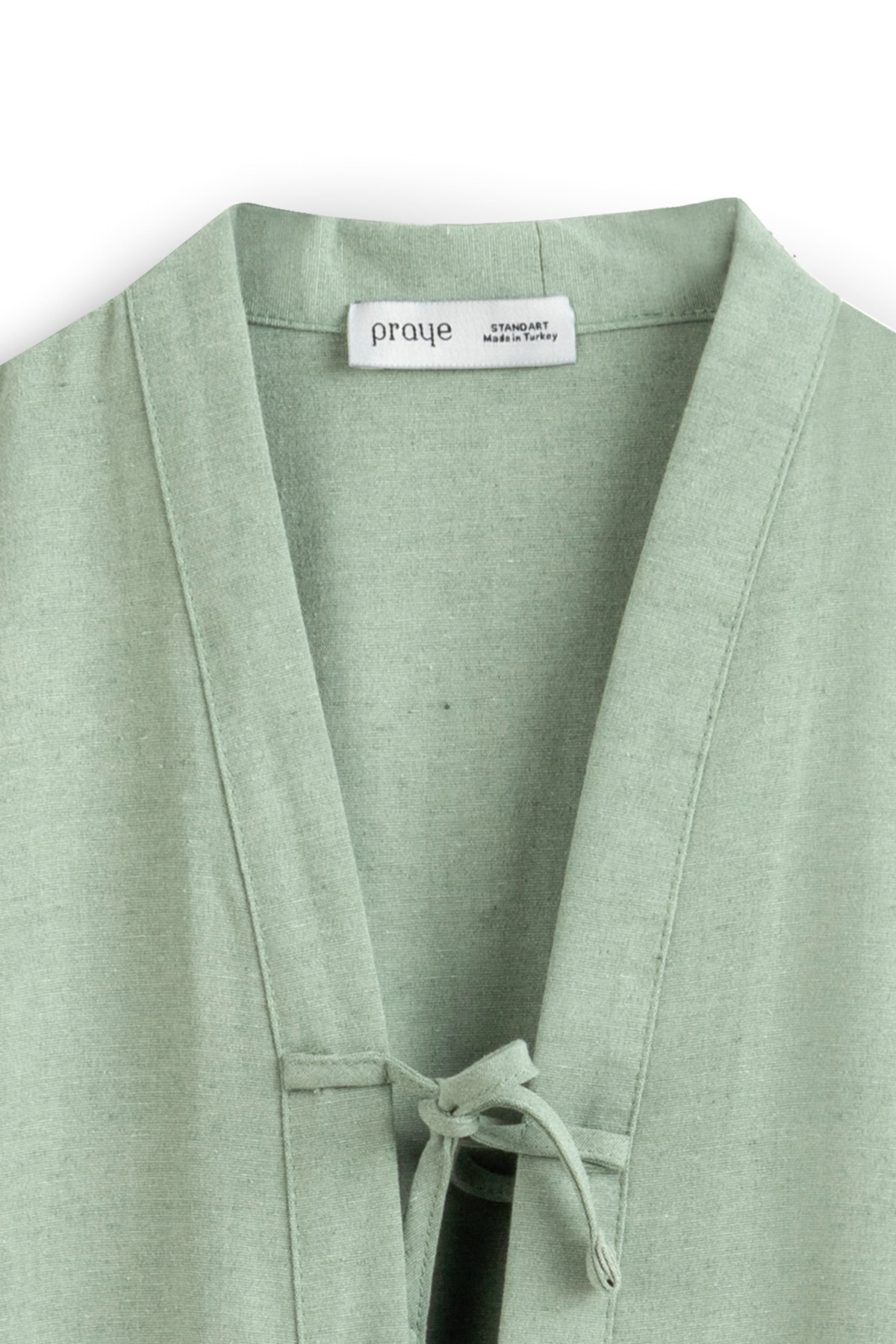 Bağcıklı Keten Karışımlı Kimono Çağla Bağcıklı Keten Karışımlı Kimono Çağla 10210598 Standart
