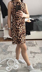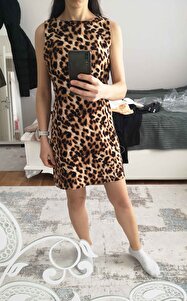 Mini Kalem Leopar Desenli Elbise Kolsuz Viskon Mini Kalem Leopar Desenli Elbise Kolsuz Viskon 4SAK80471EW 44