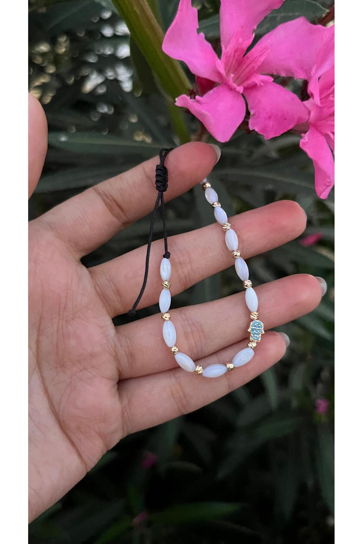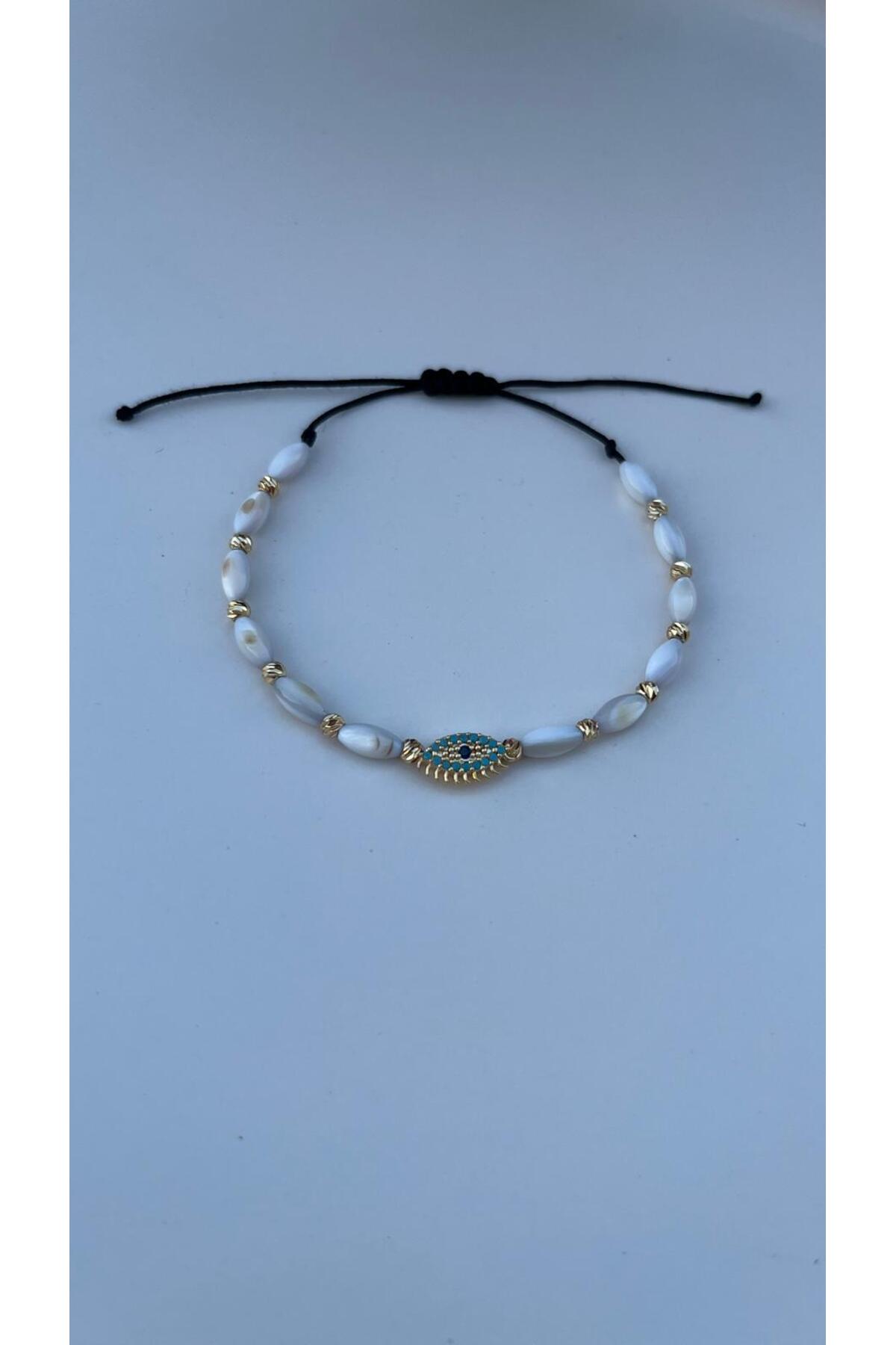 Köşeli Nazar Boncuğu Figürlü Sedef Taşlı Asansörlü Bileklik Köşeli Nazar Boncuğu Figürlü Sedef Taşlı Asansörlü Bileklik 100017 تک سایز