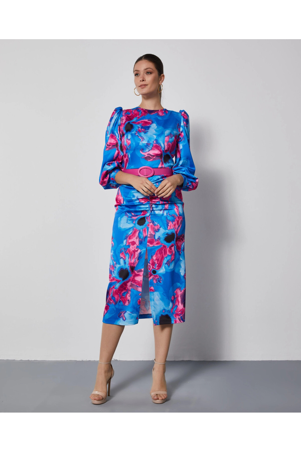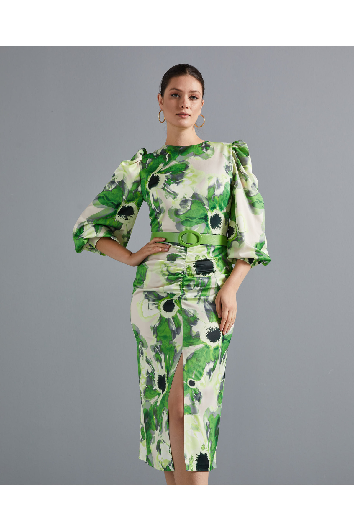 Truvakar Kol Çiçek Desenli Sarı Elbise 38478 Truvakar Kol Çiçek Desenli Sarı Elbise 38478 2310438478-24 44