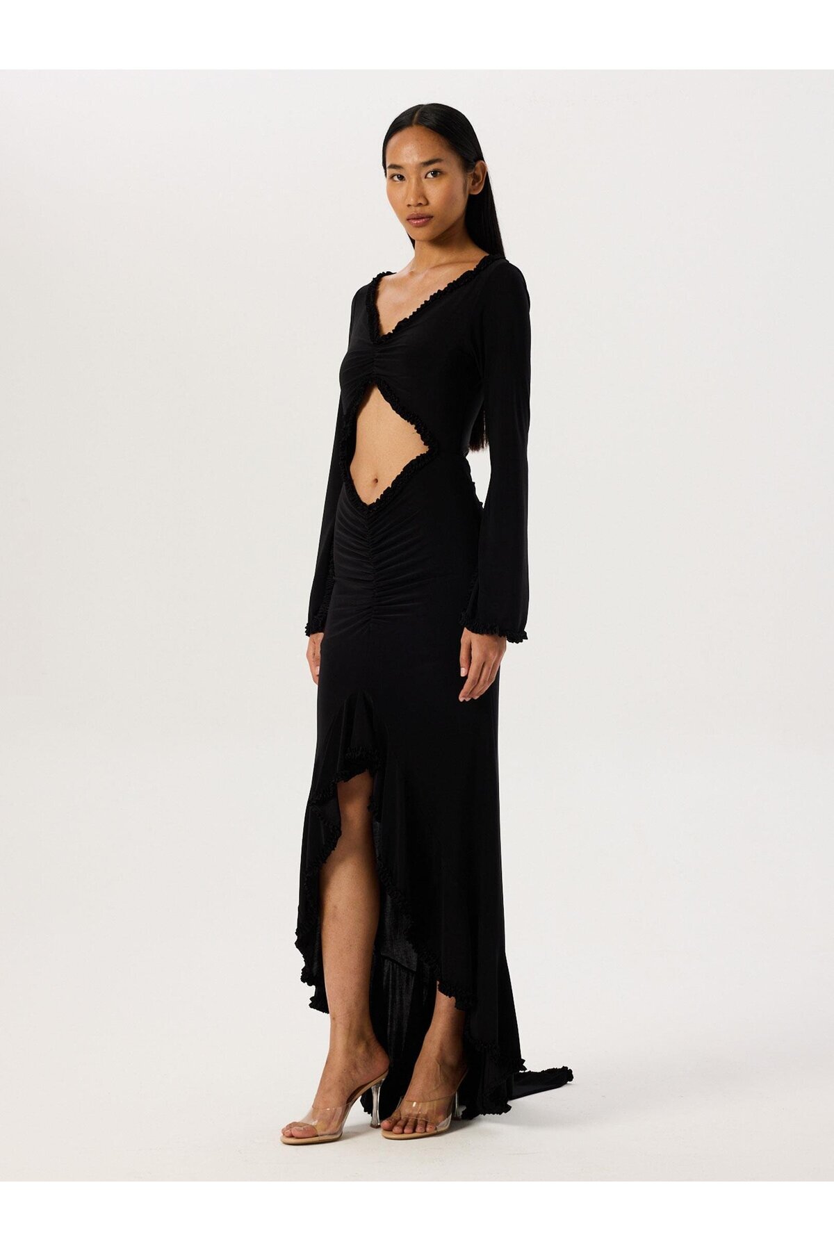 Önü Dekolteli İspanyol Elbise - Siyah Önü Dekolteli İspanyol Elbise - Siyah 24SS111002 L
