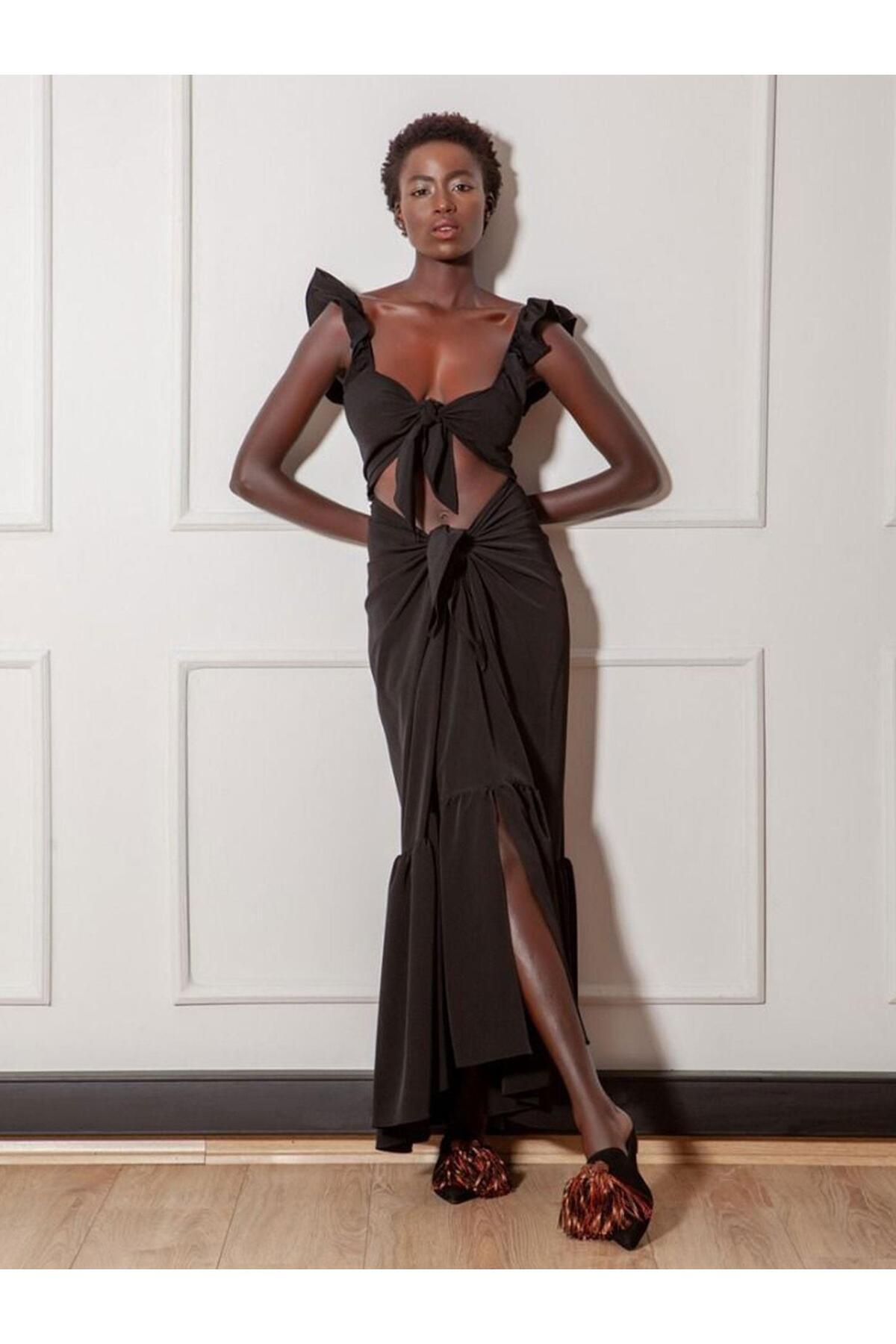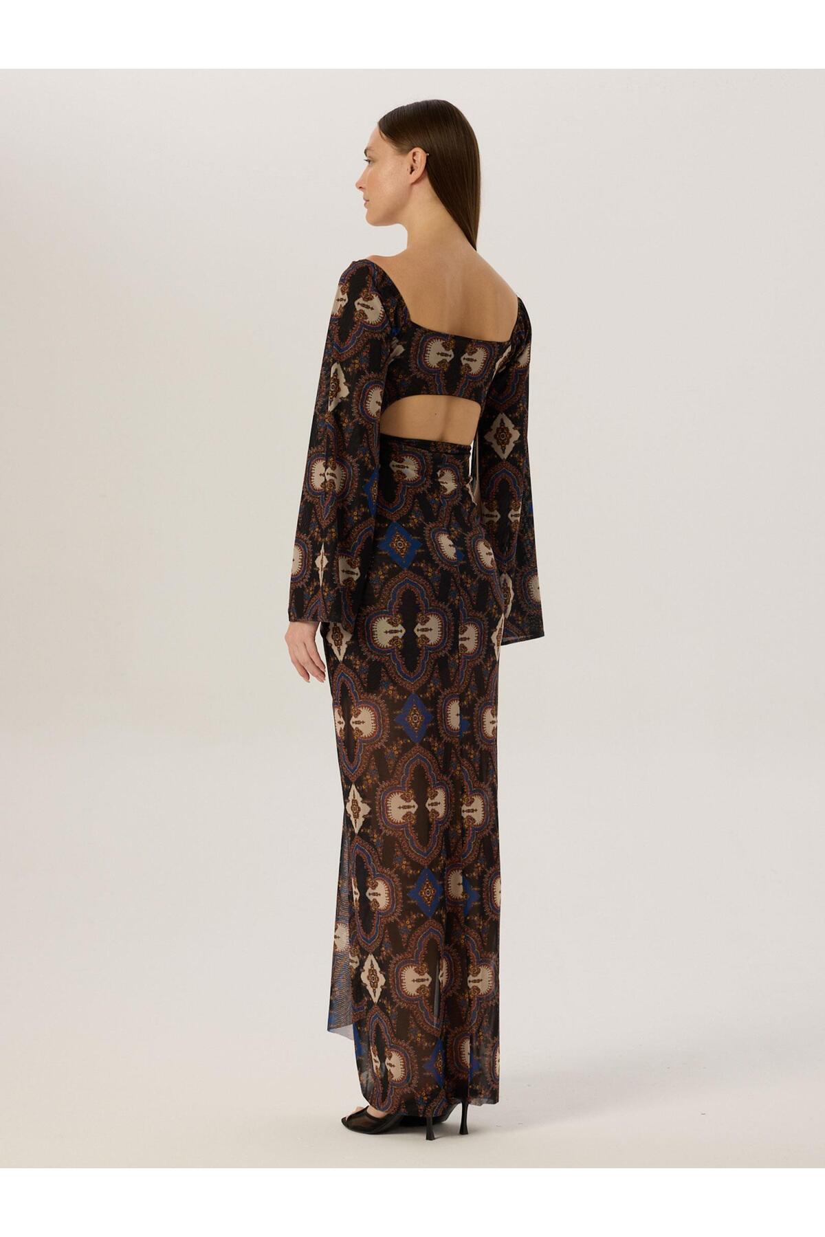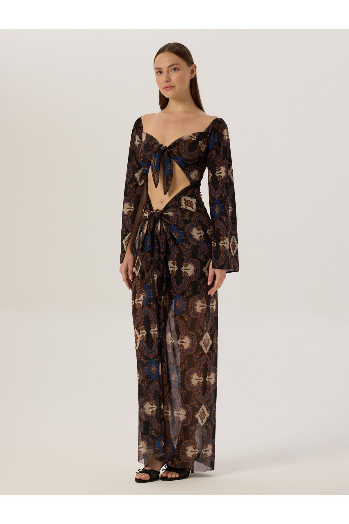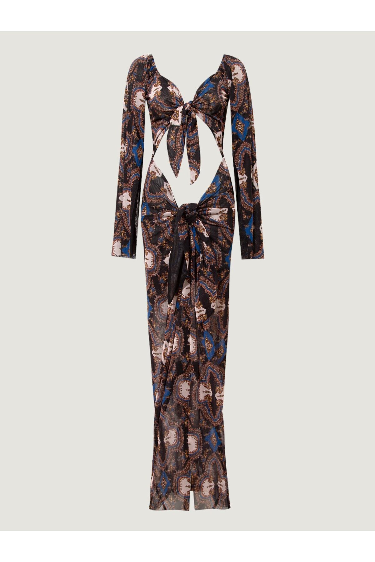 2 Parça Önü Bağlamalı Dekolteli Uzun Elbise - Desenli 2 Parça Önü Bağlamalı Dekolteli Uzun Elbise - Desenli 24SS111016 M