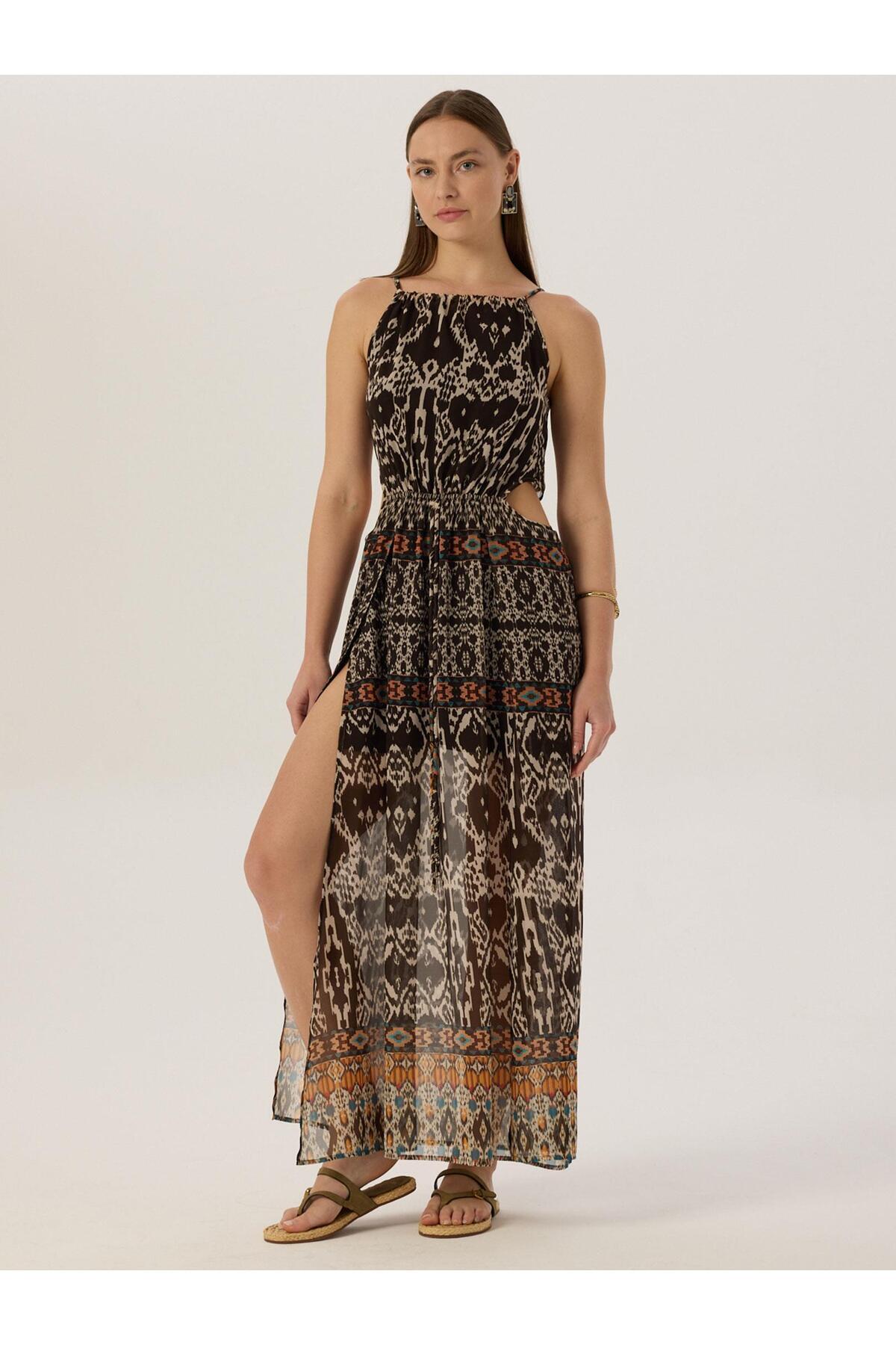 Önü Derin Dekolteli Sırtı Açık Mini elbise - Desenli Önü Derin Dekolteli Sırtı Açık Mini elbise - Desenli 24SS111014 L
