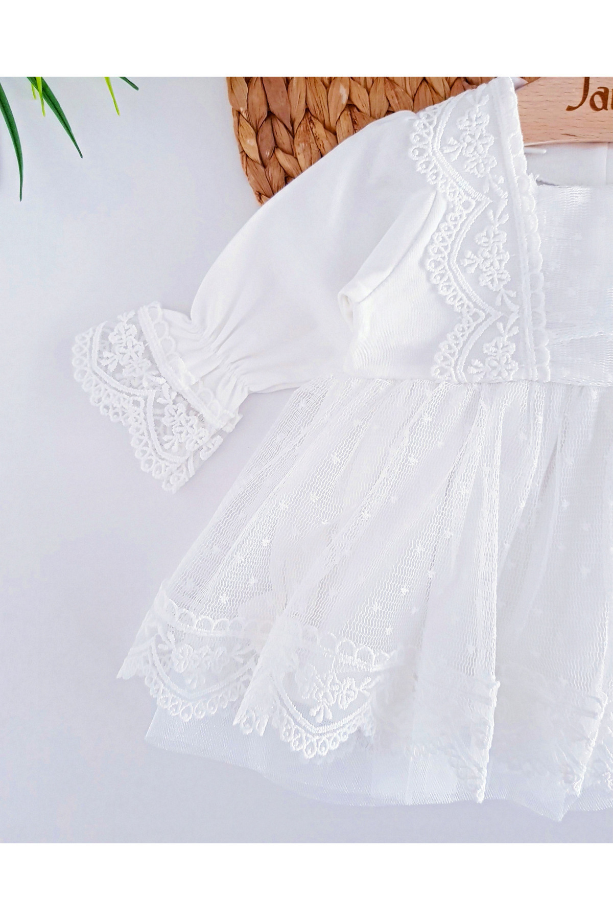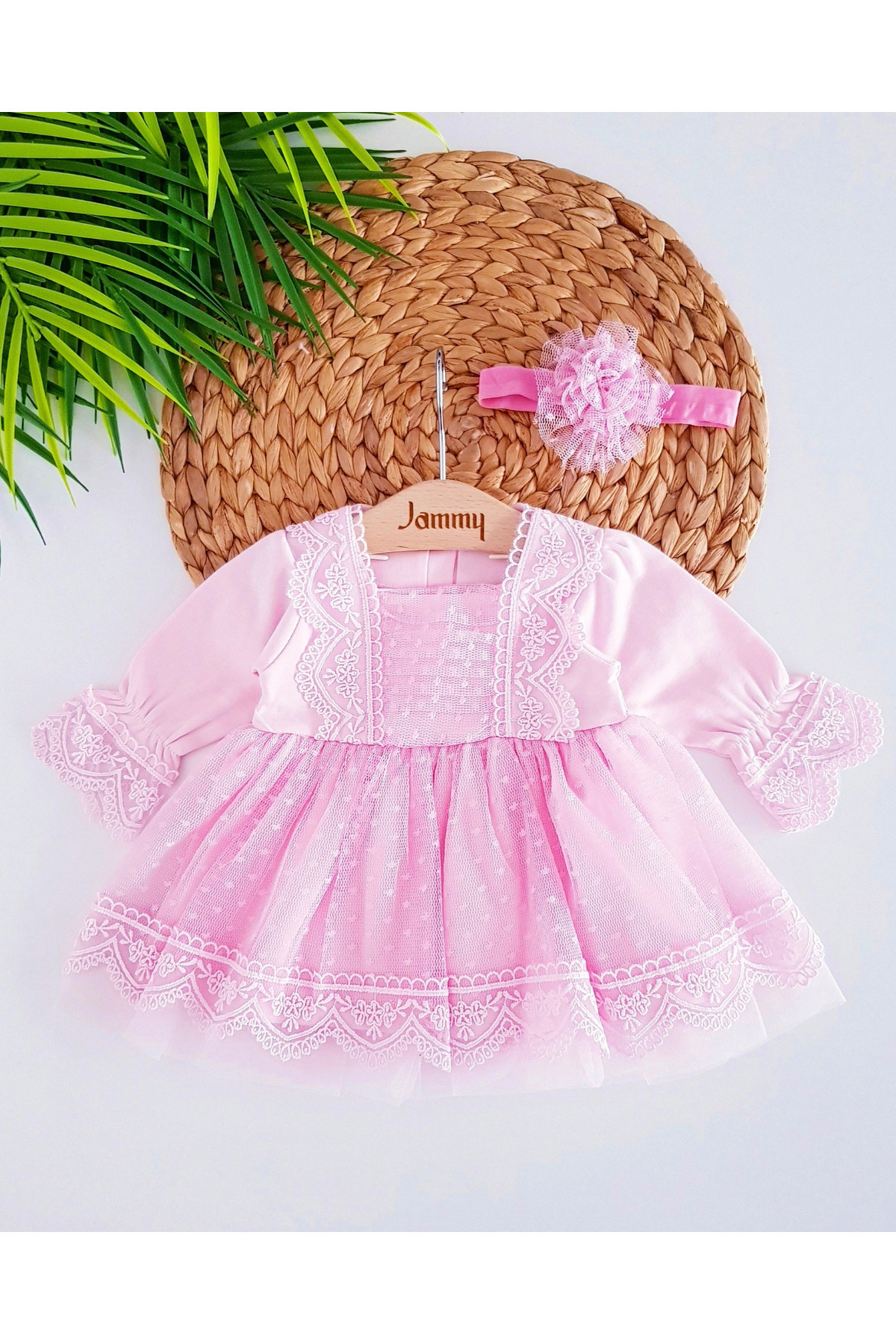 Carmen Elbise %100 Pamuk Penye Tül Dantelli Yenidoğan Kız Bebek Mevlüt ve Özel Gün Bandanalı Takım Carmen Elbise %100 Pamuk Penye Tül Dantelli Yenidoğan Kız Bebek Mevlüt ve Özel Gün Bandanalı Takım JT2743 9 - 12 Ay