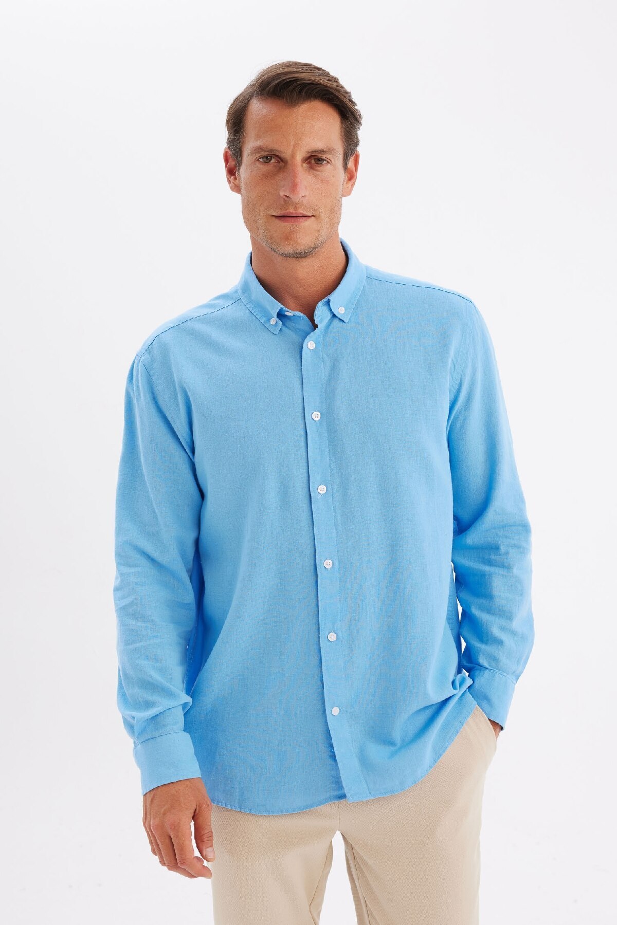 Relax Fit Polo Yaka Keten Karışımlı Pamuklu Uzun Kollu Gömlek C1106ax24sm Relax Fit Polo Yaka Keten Karışımlı Pamuklu Uzun Kollu Gömlek C1106ax24sm C1106AX24SM 2XL