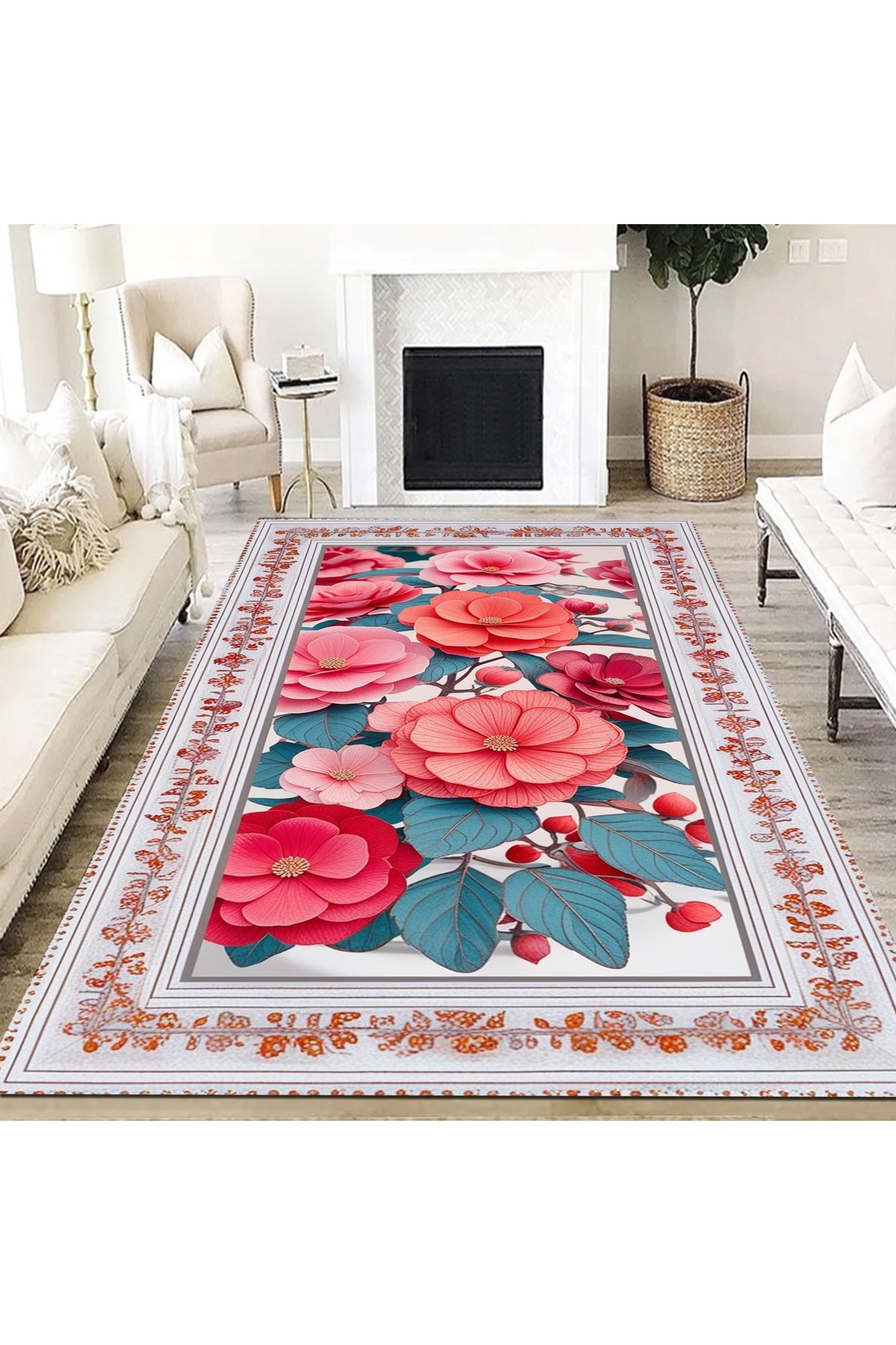 Spa Taşlı Pembe Gül Desenli Modern Kaymaz Yıkanabilir Mutfak Salon Halısı Spa Taşlı Pembe Gül Desenli Modern Kaymaz Yıkanabilir Mutfak Salon Halısı salmuthalsds 160 x 230