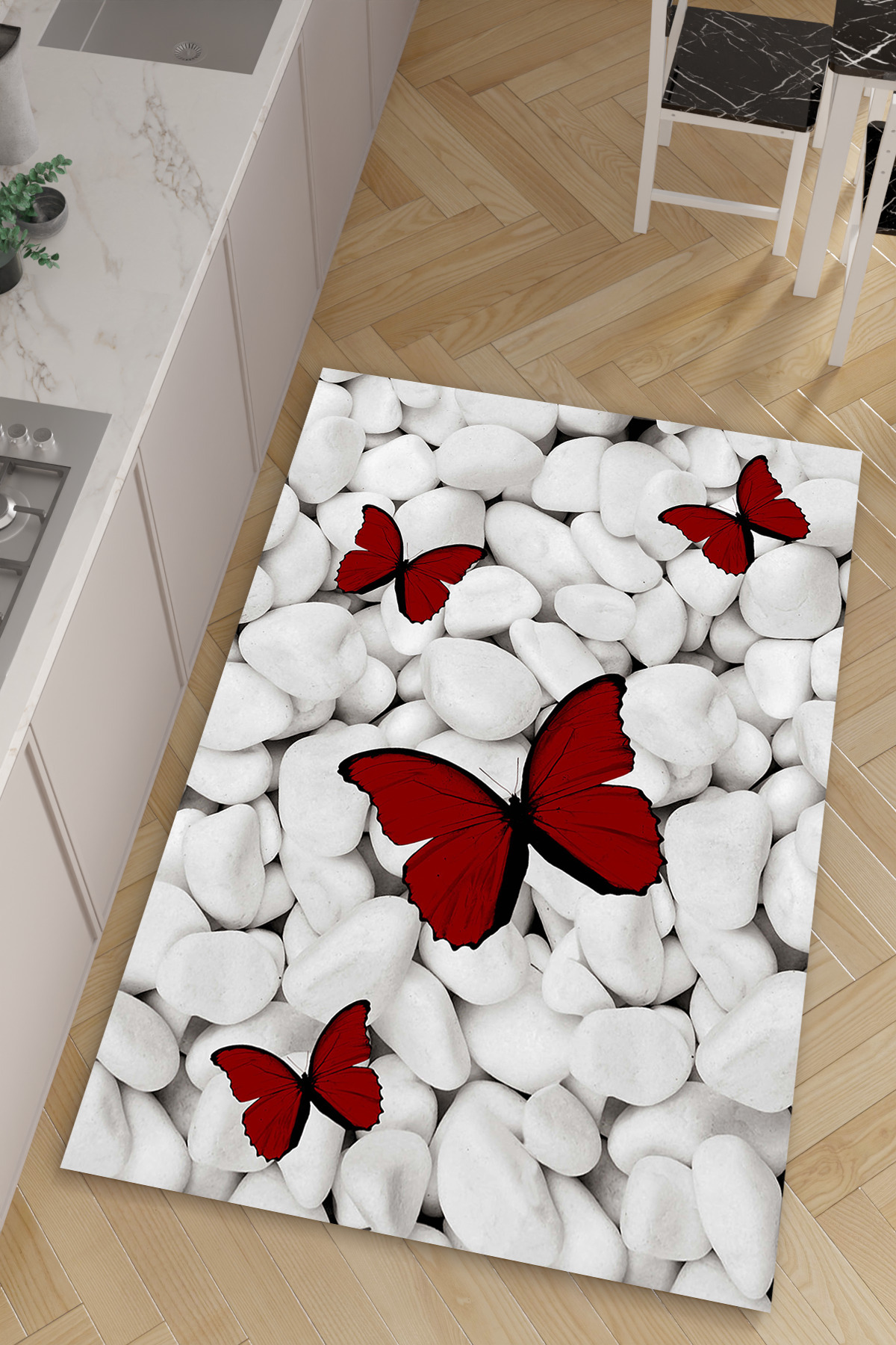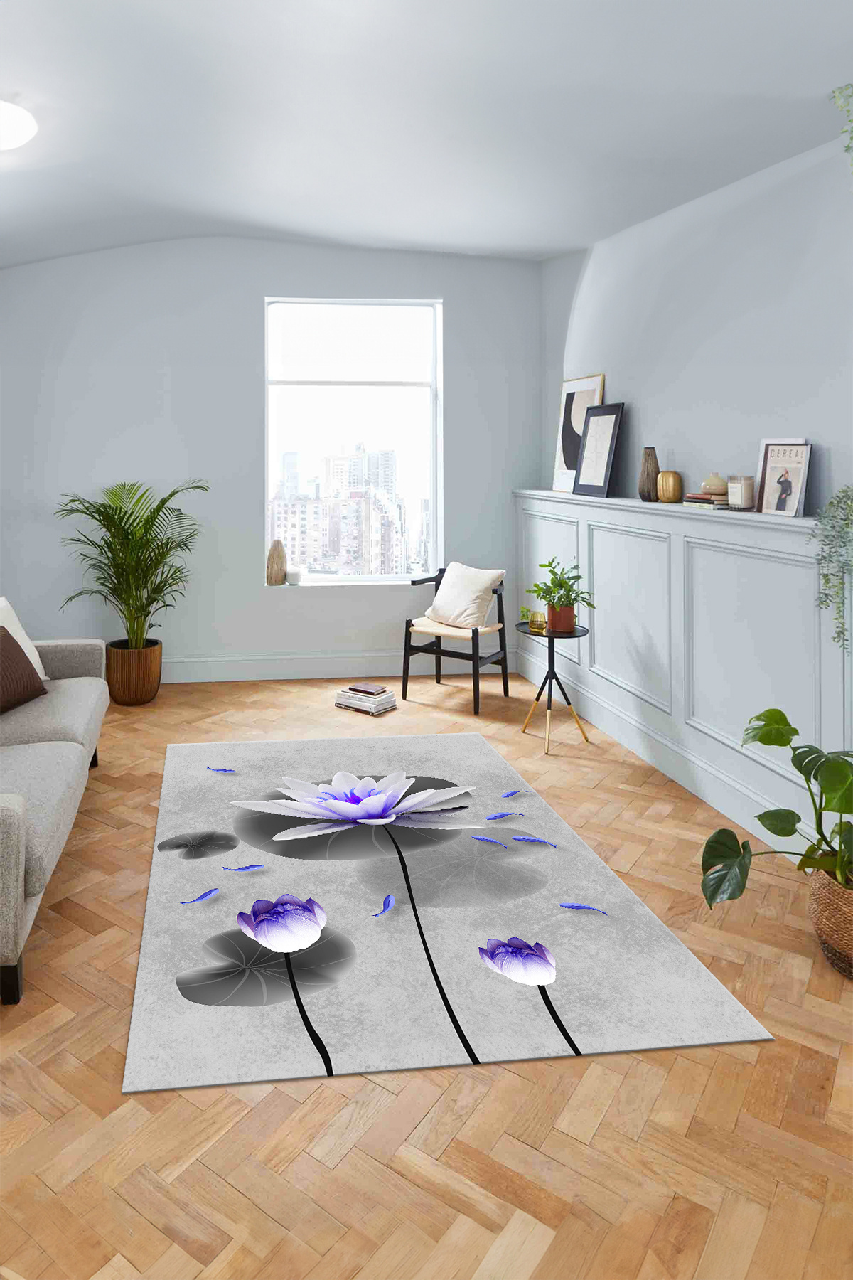 Taşlar Mavi Çiçekli Desenli Modern Kaymaz Yıkanabilir Mutfak Salon Halısı Taşlar Mavi Çiçekli Desenli Modern Kaymaz Yıkanabilir Mutfak Salon Halısı salmuthalsds 160 x 230