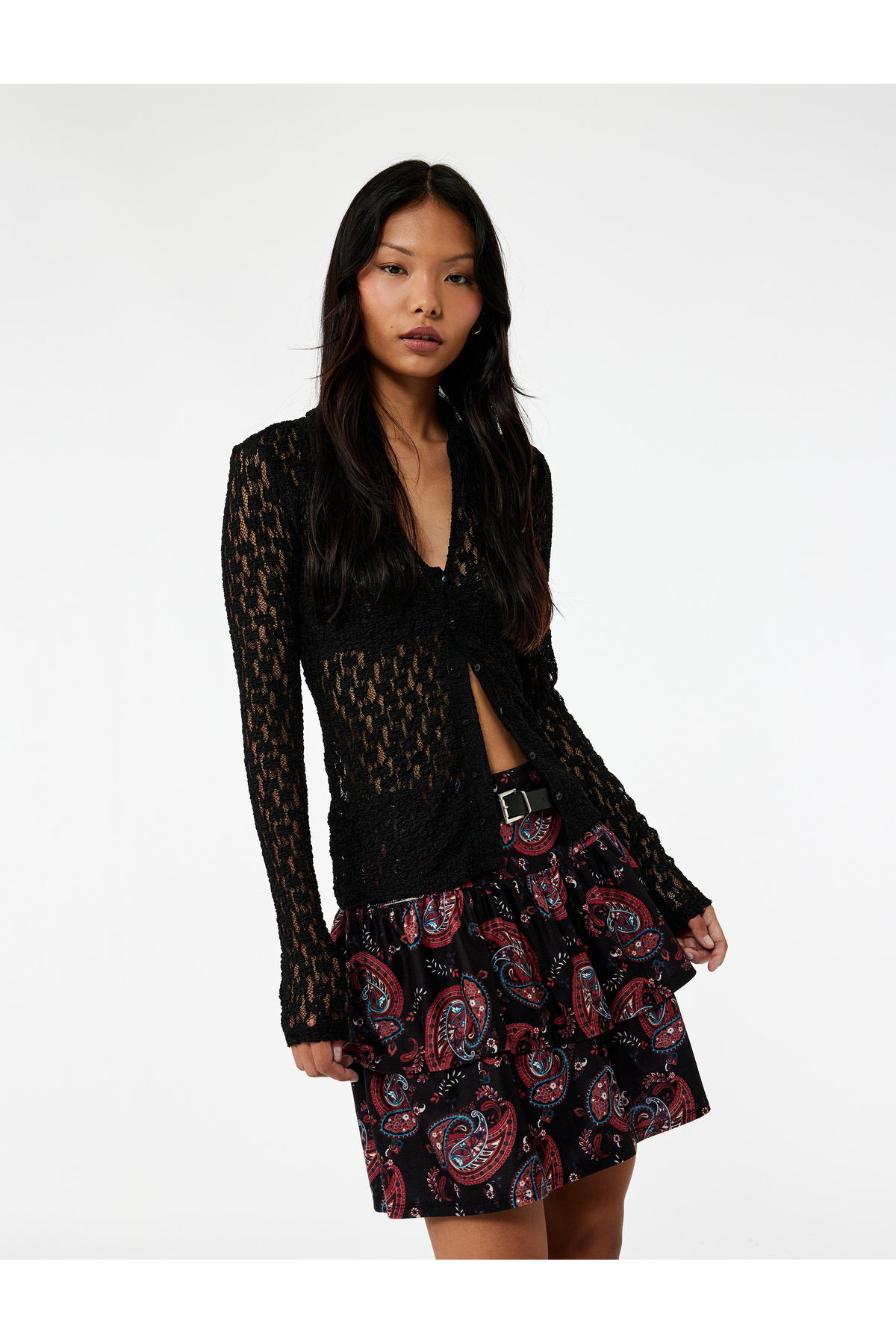 Şort Etek Mini Puantiyeli Bürümcük Volanlı Bağlama Detaylı Şort Etek Mini Puantiyeli Bürümcük Volanlı Bağlama Detaylı 4SAL70084IK L