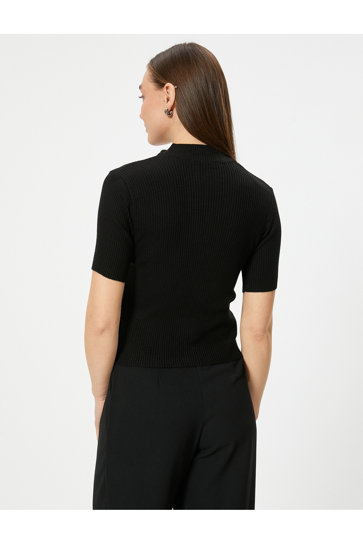 Kısa Kollu Dokulu Yarım Fermuarlı Polo Yaka Triko Kazak Kısa Kollu Dokulu Yarım Fermuarlı Polo Yaka Triko Kazak 5WAK90148HT XL