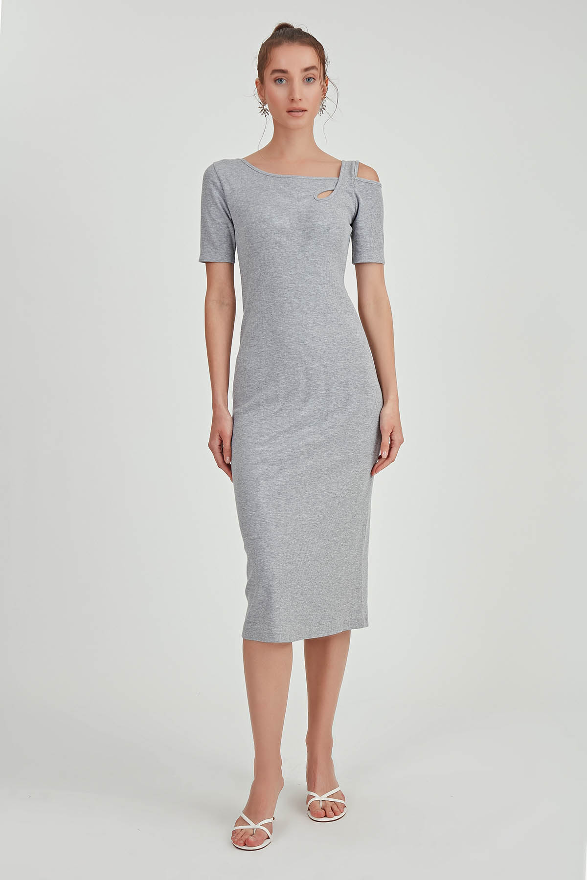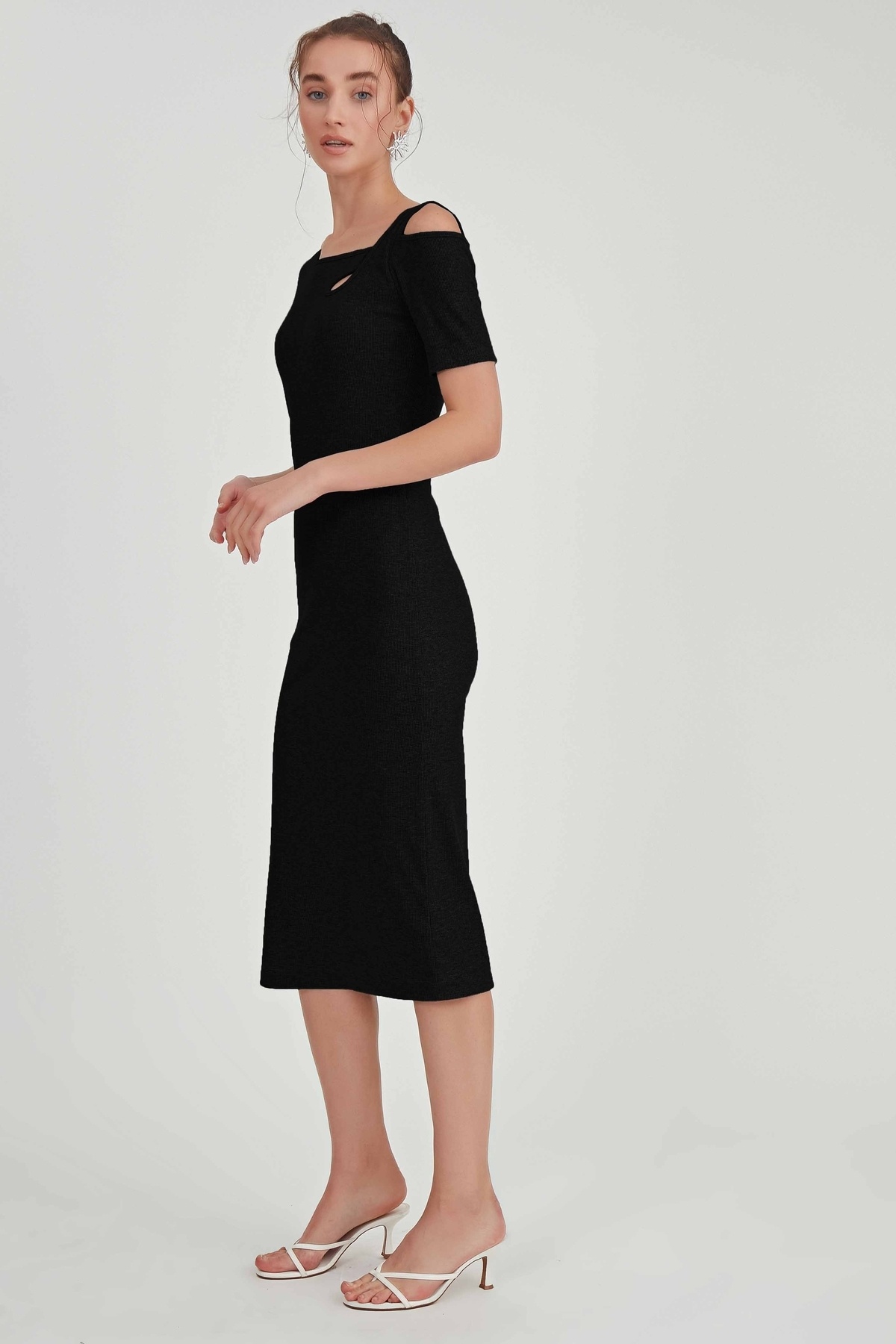 Omuz Detaylı Uzun Örme Elbise Omuz Detaylı Uzun Örme Elbise 24-4847 L
