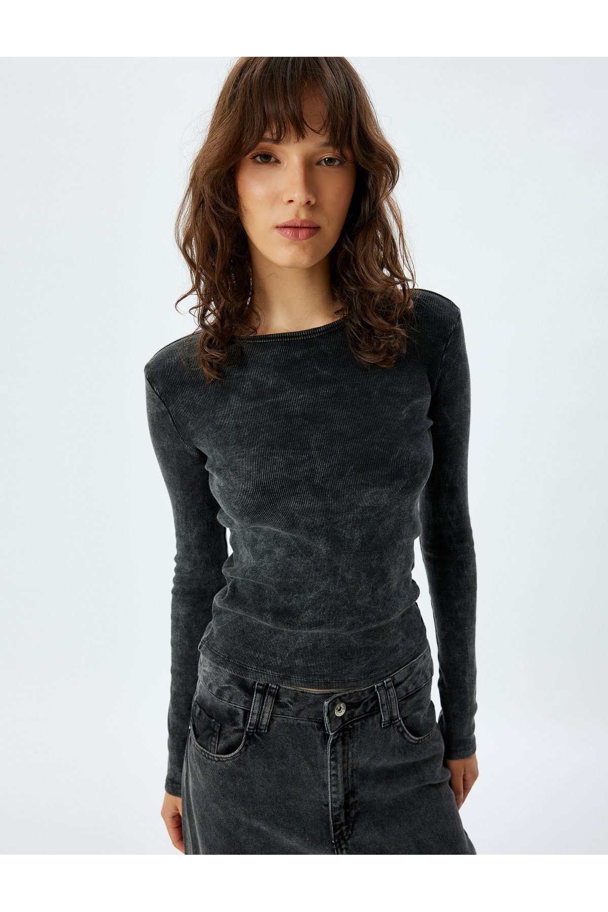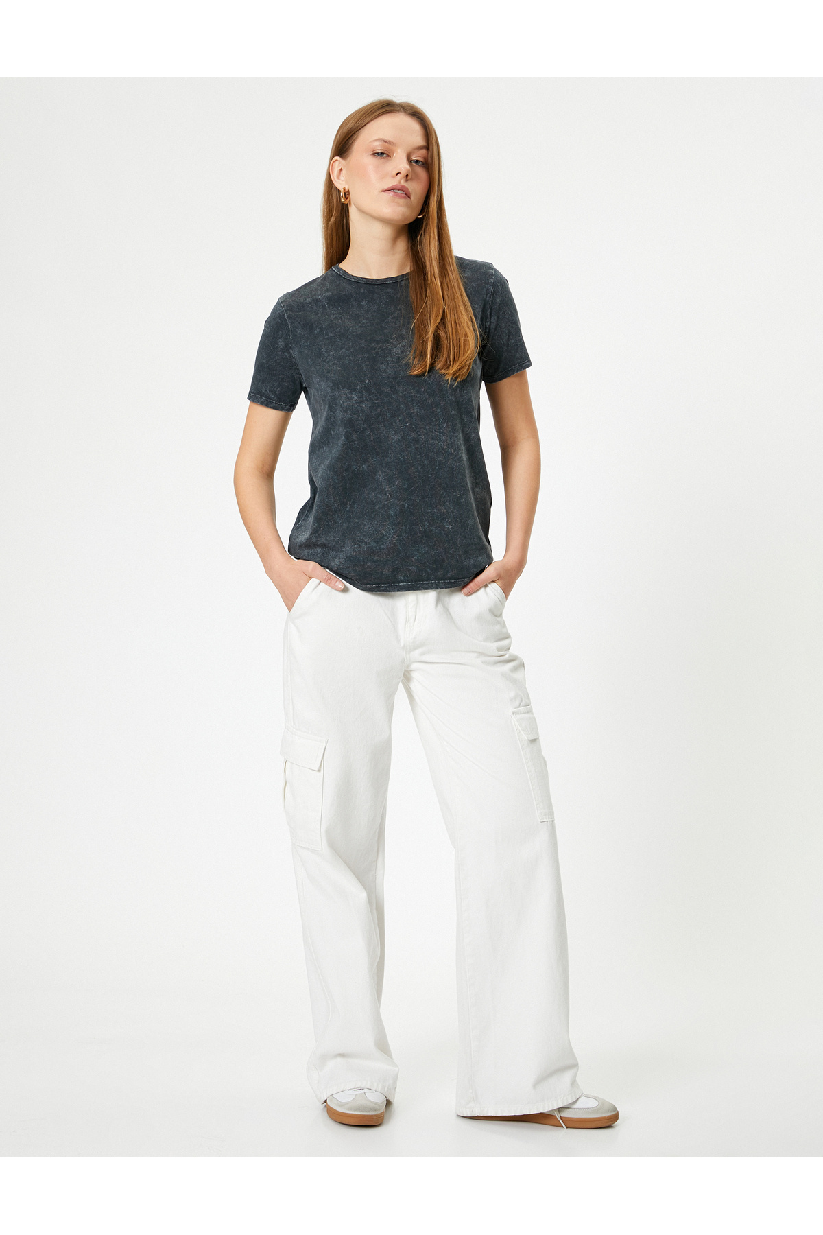 Soluk Efektli Pamuklu Bisiklet Yaka Kısa Kollu Tişört Soluk Efektli Pamuklu Bisiklet Yaka Kısa Kollu Tişört 5WAK50031EK 2XL