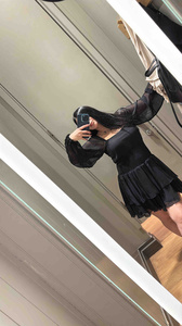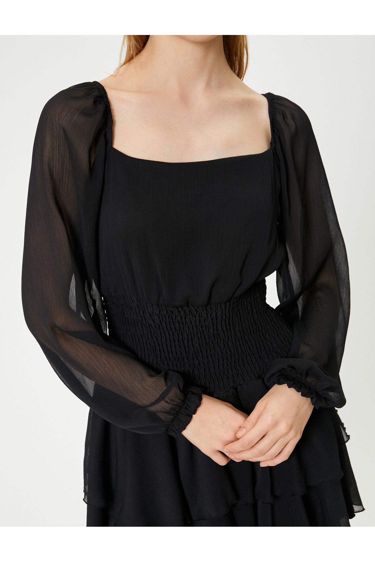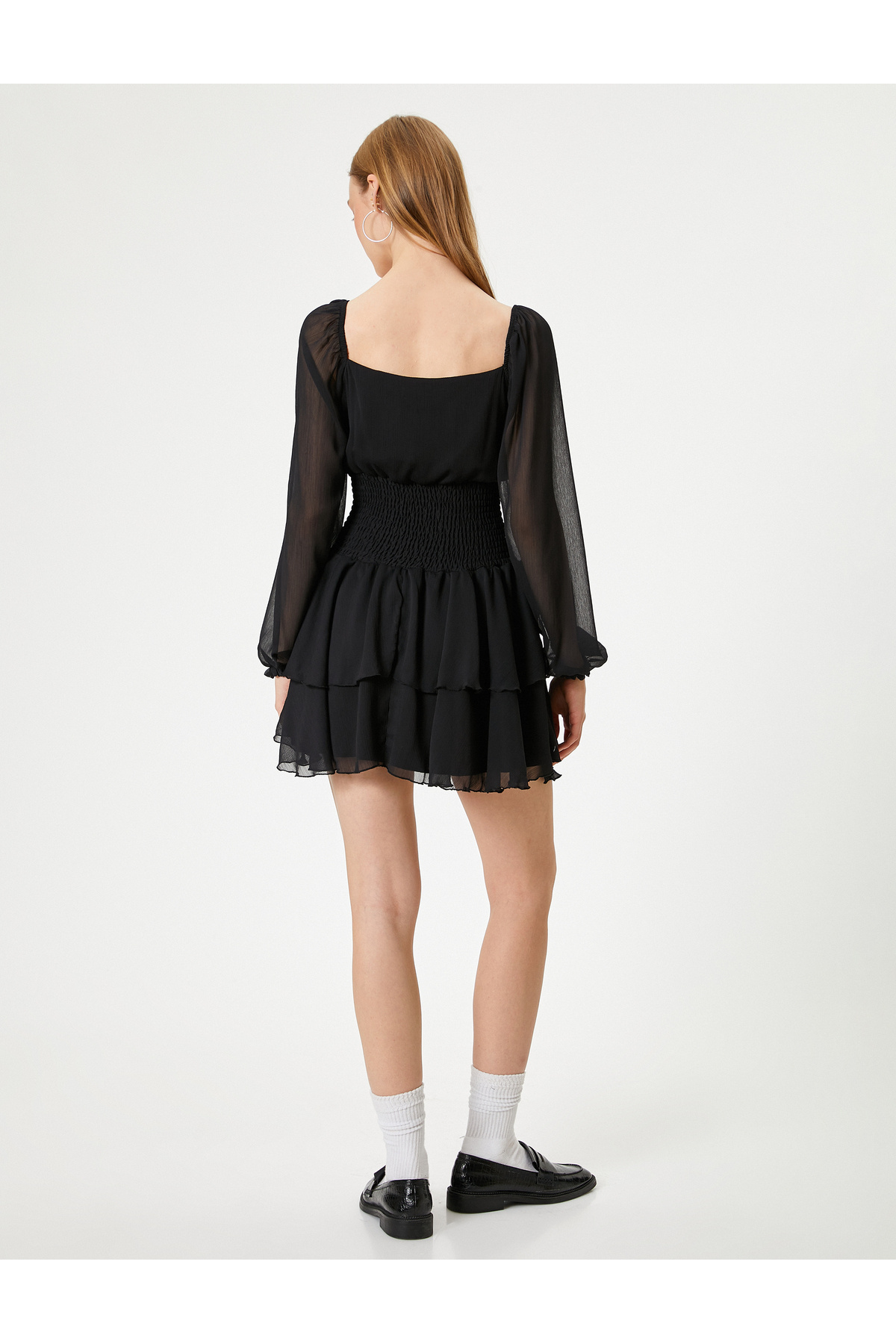 Mini Şifon Elbise Uzun Balon Kol Gipeli Kare Yaka Volanlı Mini Şifon Elbise Uzun Balon Kol Gipeli Kare Yaka Volanlı 5WAL80006IW 40