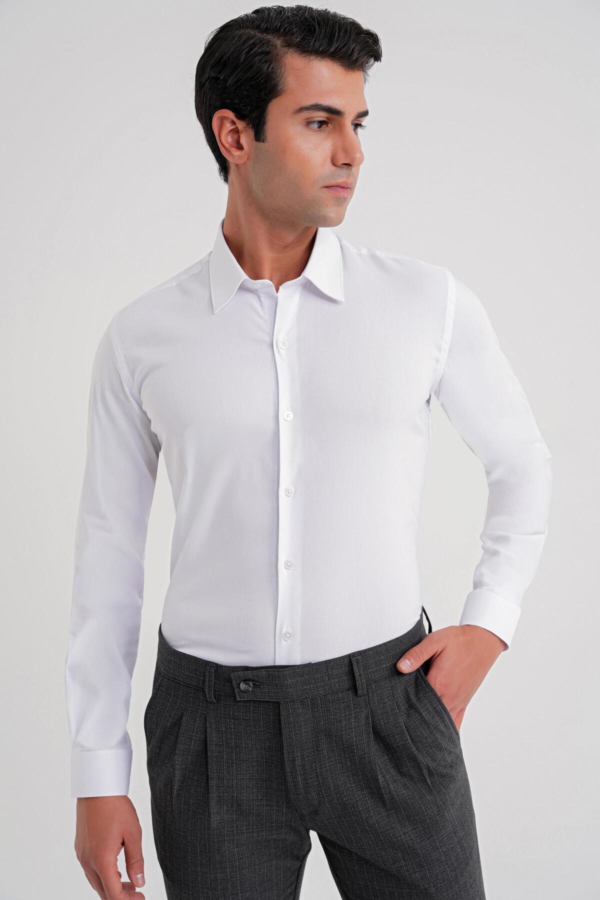 Gk 719 Slim Fit Dokulu Pamuklu Klasik Beyaz Gömlek Gk 719 Slim Fit Dokulu Pamuklu Klasik Beyaz Gömlek GK719Y1123 4XL