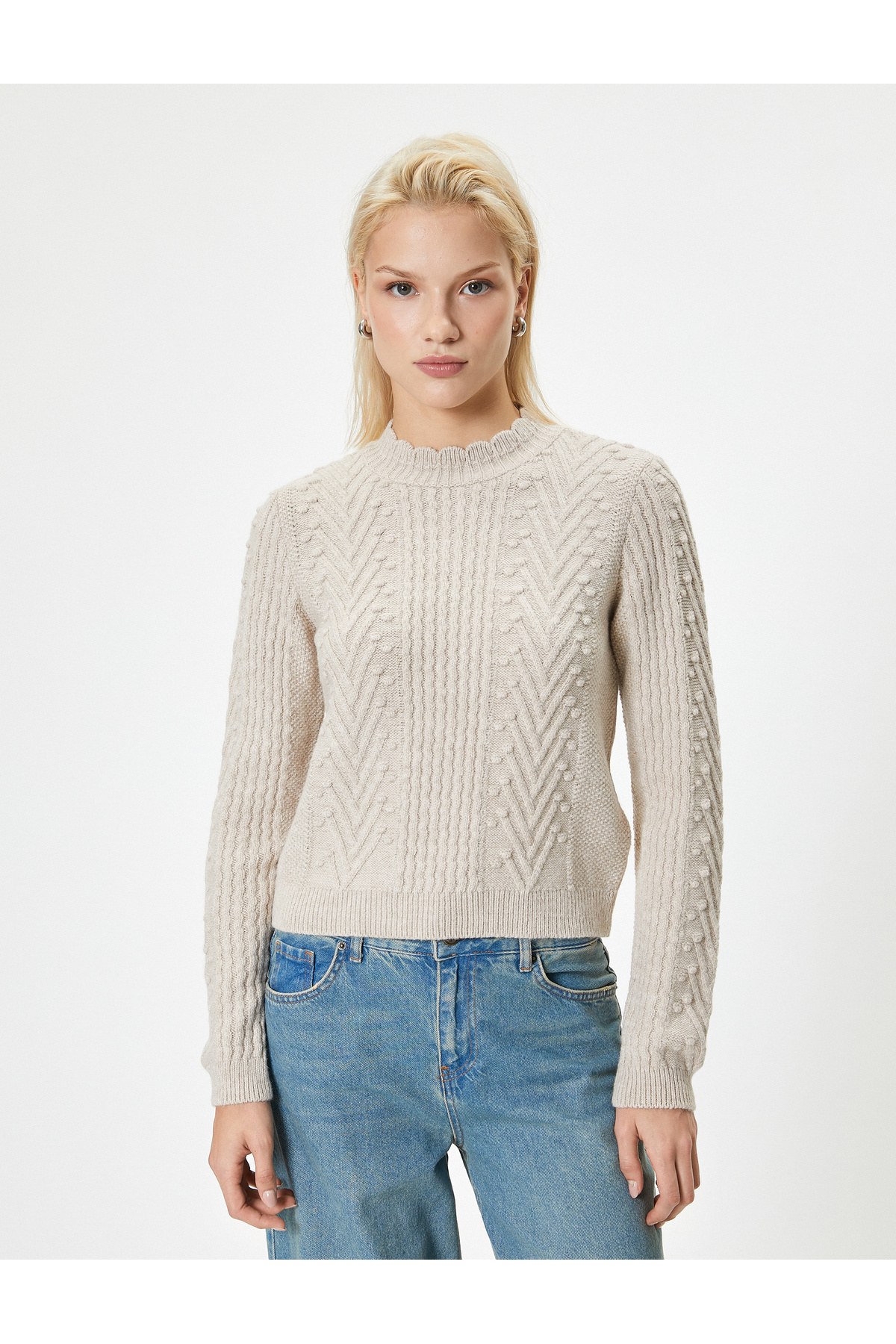 Uzun Kollu Hafif Dik Yaka Dokulu Triko Kazak Uzun Kollu Hafif Dik Yaka Dokulu Triko Kazak 5WAK90139HT XL