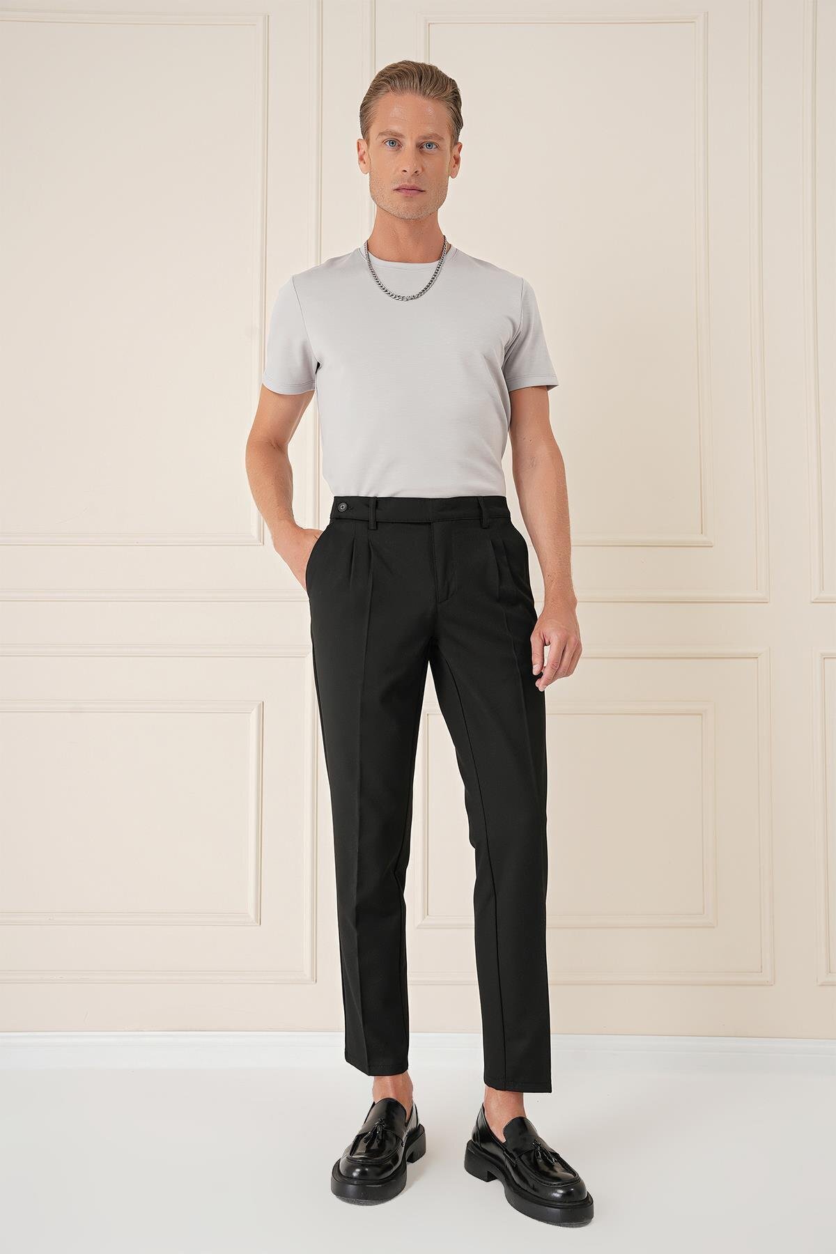 Yandan Tokalı Çift Pileli Esnek Pamuk Gri Pantolon P 1160 Yandan Tokalı Çift Pileli Esnek Pamuk Gri Pantolon P 1160 P1160Y0324 4XL