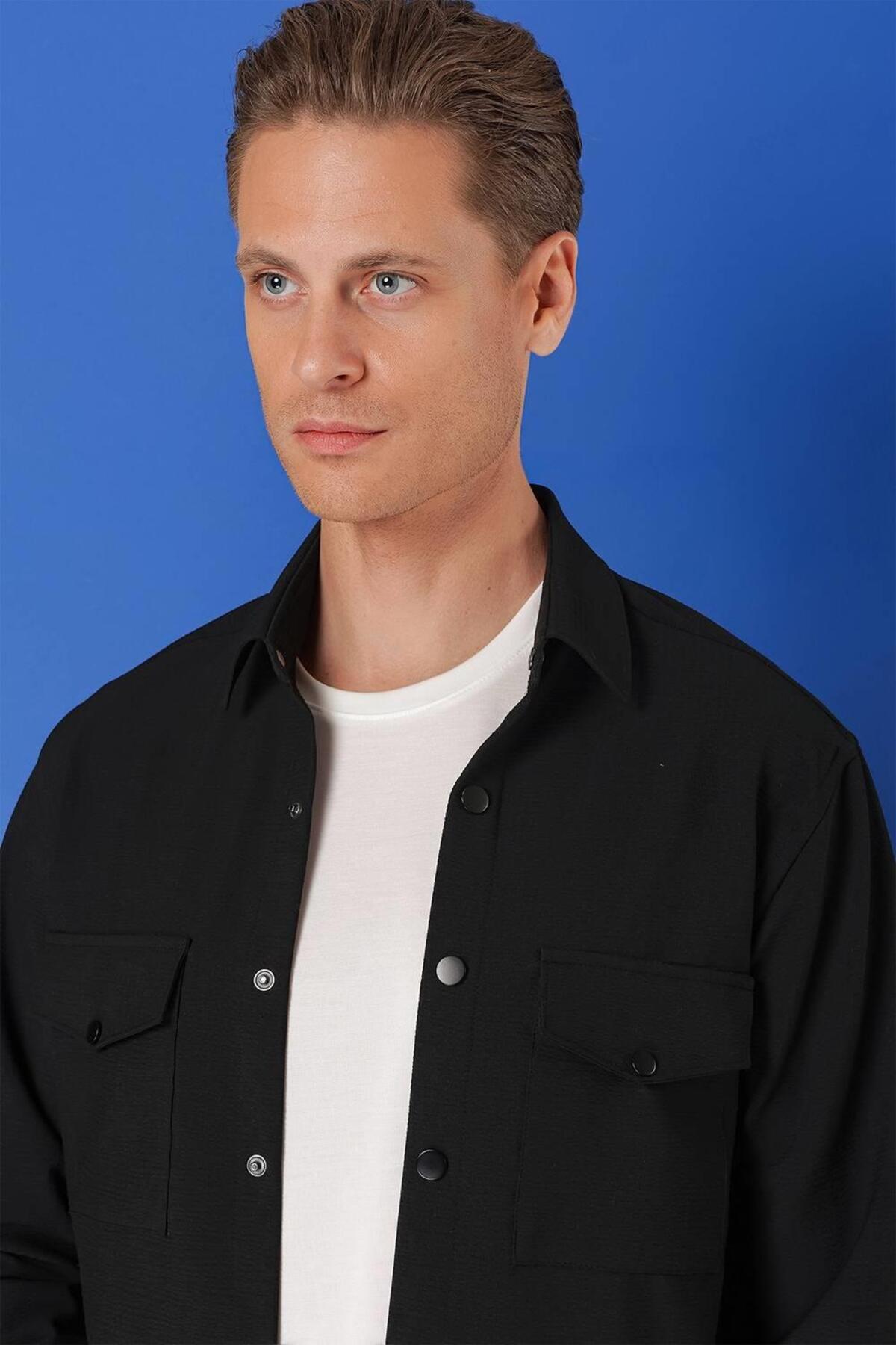 Comfort Fit Yan Cep Çıtçıtlı Esnek Pamuk Siyah Gömlek Ceket G 1565 Comfort Fit Yan Cep Çıtçıtlı Esnek Pamuk Siyah Gömlek Ceket G 1565 G1565Y1123 4XL