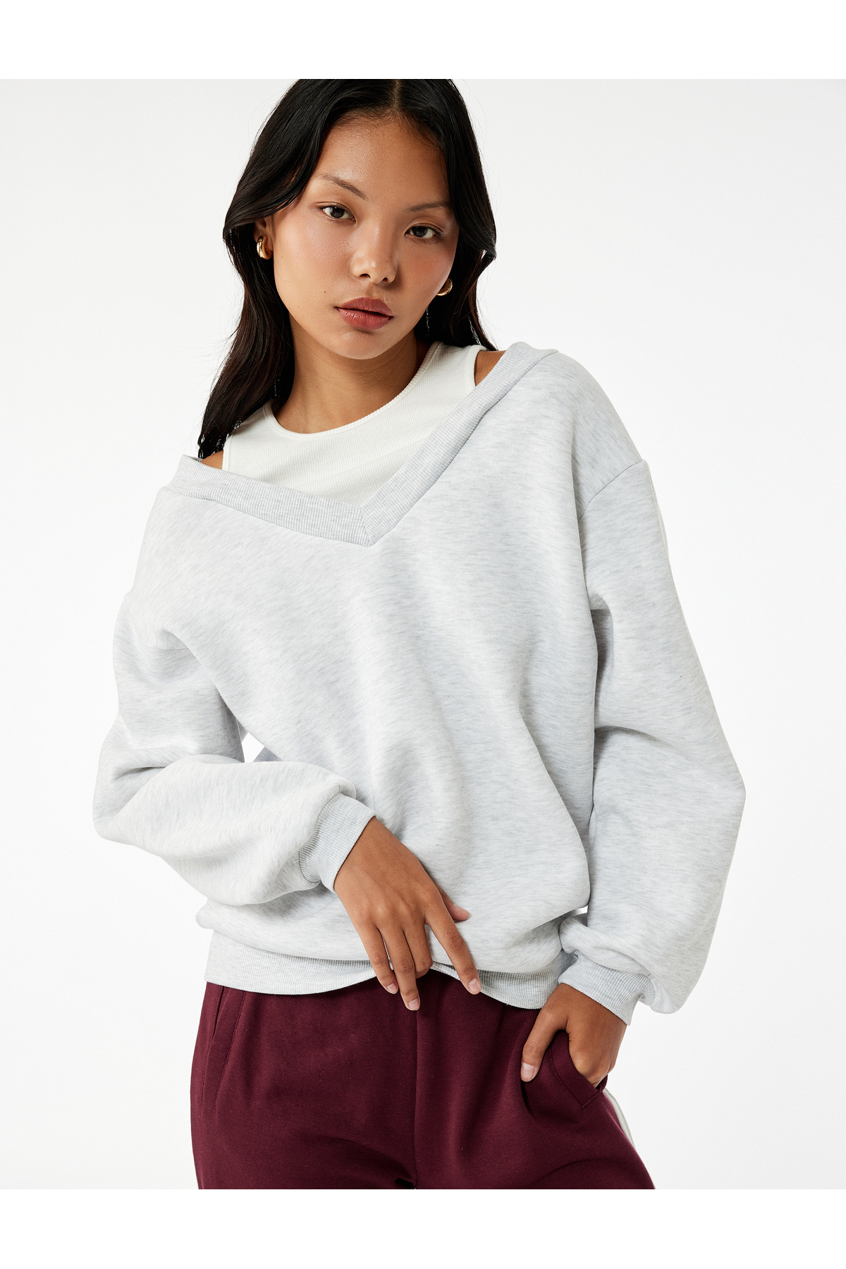 Şardonlu Oversize Sweatshirt Atlet Detaylı Uzun Kollu Şardonlu Oversize Sweatshirt Atlet Detaylı Uzun Kollu 5WAL10242IK XL