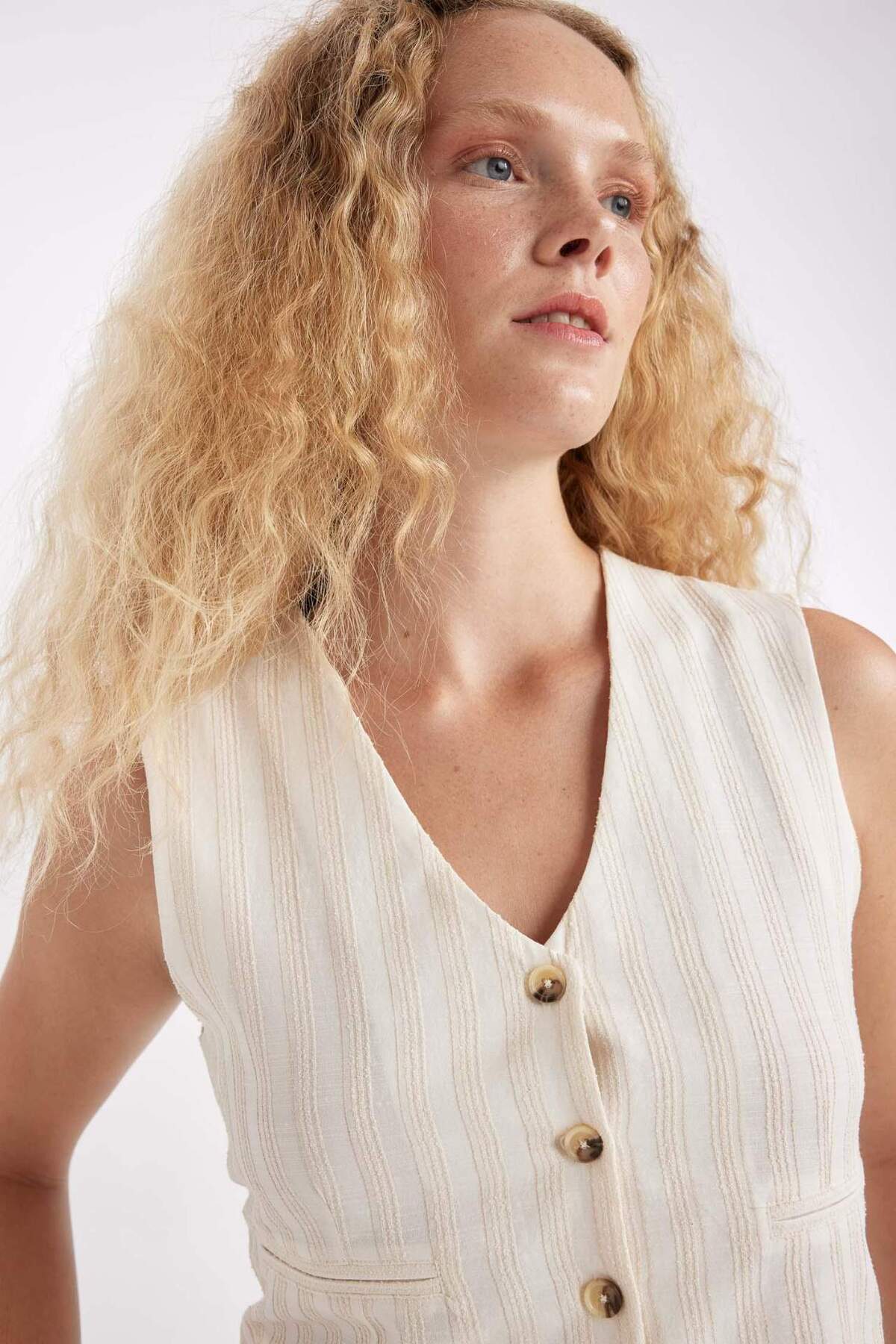 Regular Fit V Yaka Keten Karışımlı Blazer Yelek D3474AX24HS Regular Fit V Yaka Keten Karışımlı Blazer Yelek D3474AX24HS 42