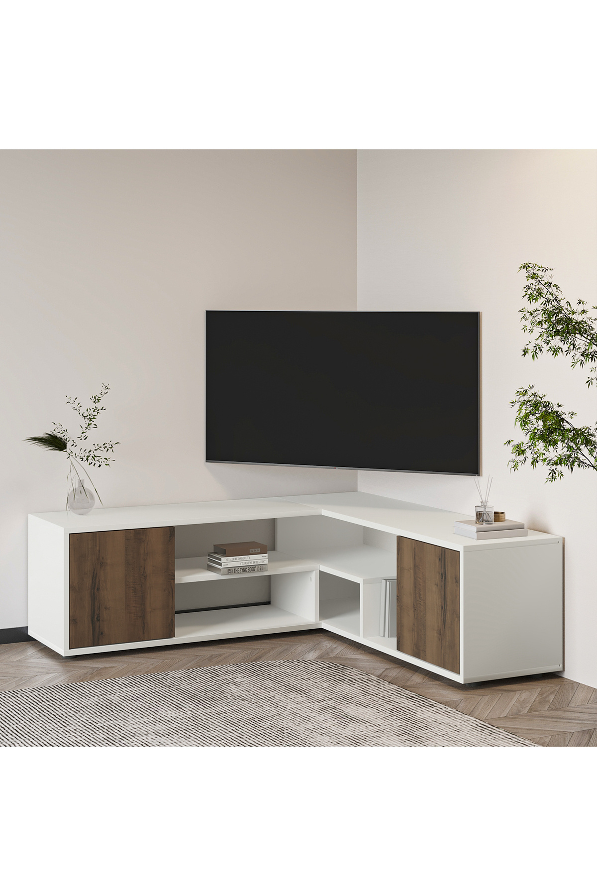 Roza Kapaklı, Açık Raflı Köşe Tv Ünitesi, Tv Sehpası Beyaz/kilim Roza Kapaklı, Açık Raflı Köşe Tv Ünitesi, Tv Sehpası Beyaz/kilim ROZAKÖŞETV تک سایز