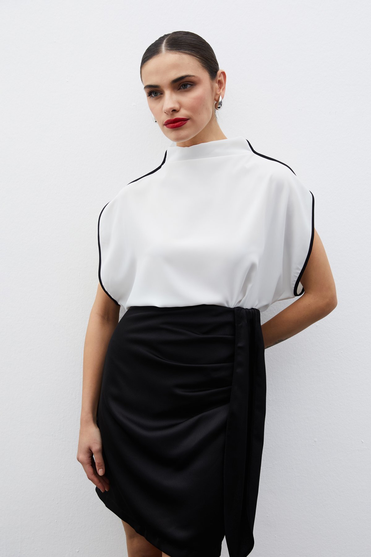 Boğazlı Kontrast Bluz - LACİVERT Boğazlı Kontrast Bluz - LACİVERT STN139KBL1479 42