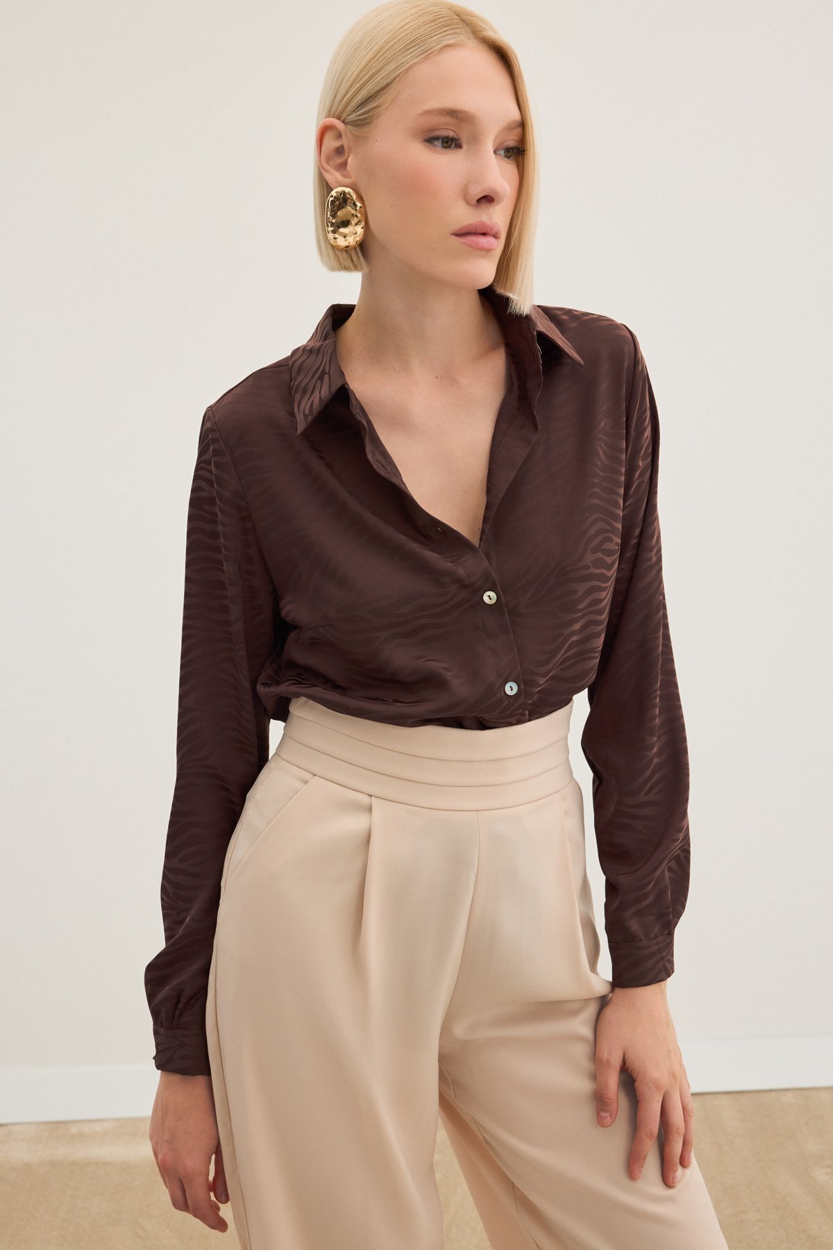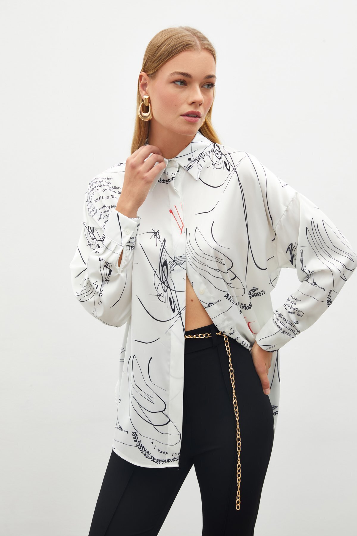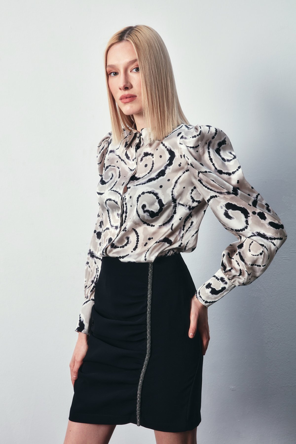 Saten Desenli Gömlek - SİYAH Saten Desenli Gömlek - SİYAH STN139KGO1466 42