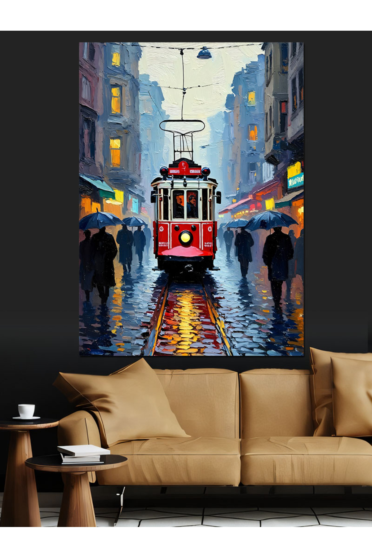 Paris Sokakları Yağmurda Yürüyen Çift Dekoratif Kanvas TABLO Paris Sokakları Yağmurda Yürüyen Çift Dekoratif Kanvas TABLO AR110830 80 x 120