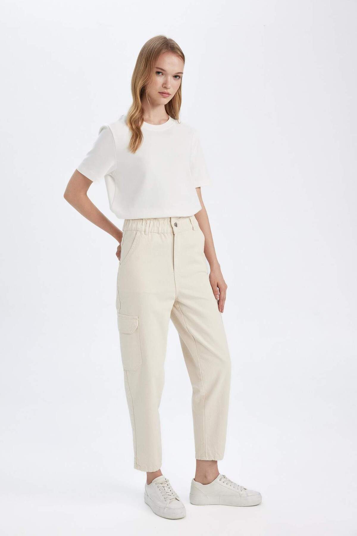 Paperbag Yüksek Bel Kargo Cepli Bilek Boy Beyaz Jean Pantolon C1255AX24SM Paperbag Yüksek Bel Kargo Cepli Bilek Boy Beyaz Jean Pantolon C1255AX24SM 46