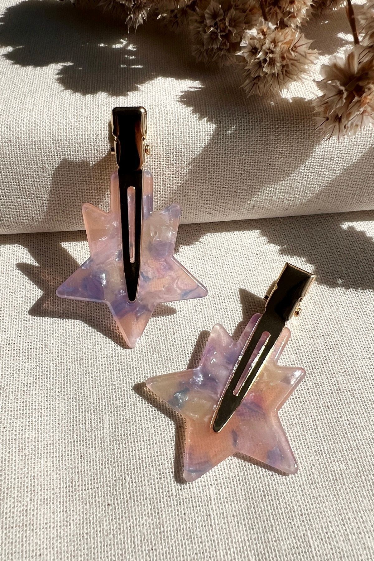 2’li İz Yapmayan Klips Toka Seti Lila Sedefli Yıldız 2’li İz Yapmayan Klips Toka Seti Lila Sedefli Yıldız SCABSTLI تک سایز