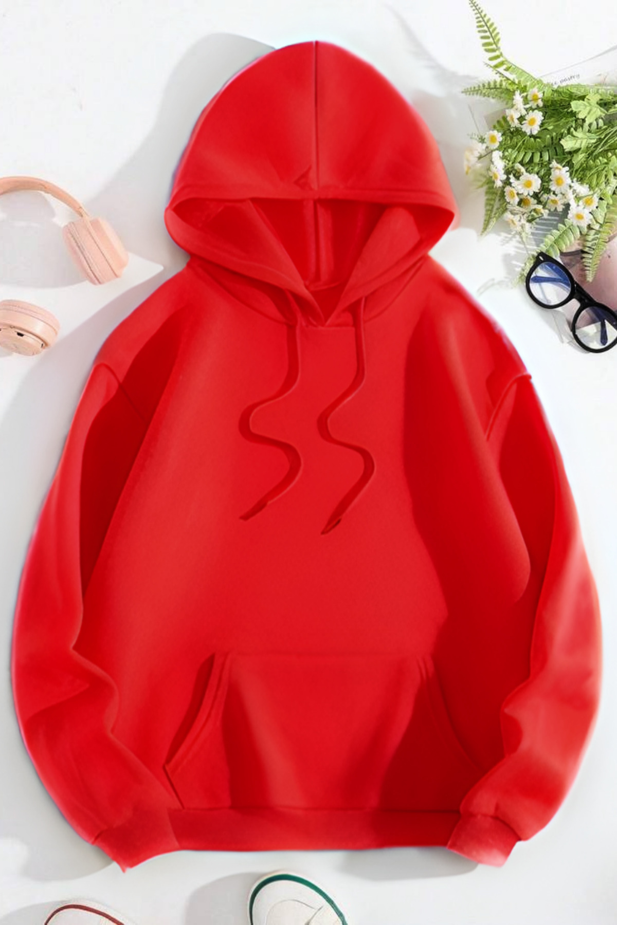 Erkek KIRMIZI Oversize 3 İplik Şardonlu Kapşonlu Kanguru Cep Sweatshirt Erkek KIRMIZI Oversize 3 İplik Şardonlu Kapşonlu Kanguru Cep Sweatshirt BBSWT001 XL