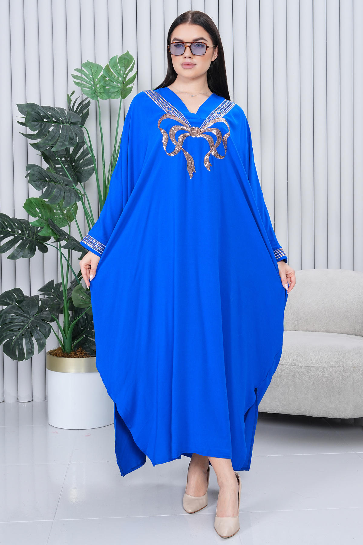 Kadın Saks Mavi Yakası Payetli Büyük Beden Oversize Viskon Elbise Kadın Saks Mavi Yakası Payetli Büyük Beden Oversize Viskon Elbise A281 Battal Standart
