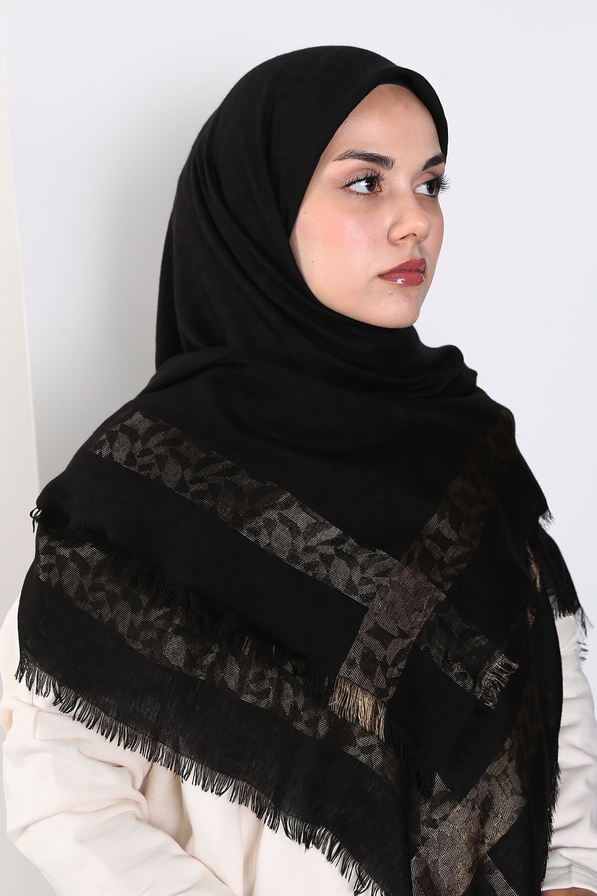Pamuklu 140cm x 140cm Şal Eşarp - Siyah Pamuklu 140cm x 140cm Şal Eşarp - Siyah 9045 140 x 140