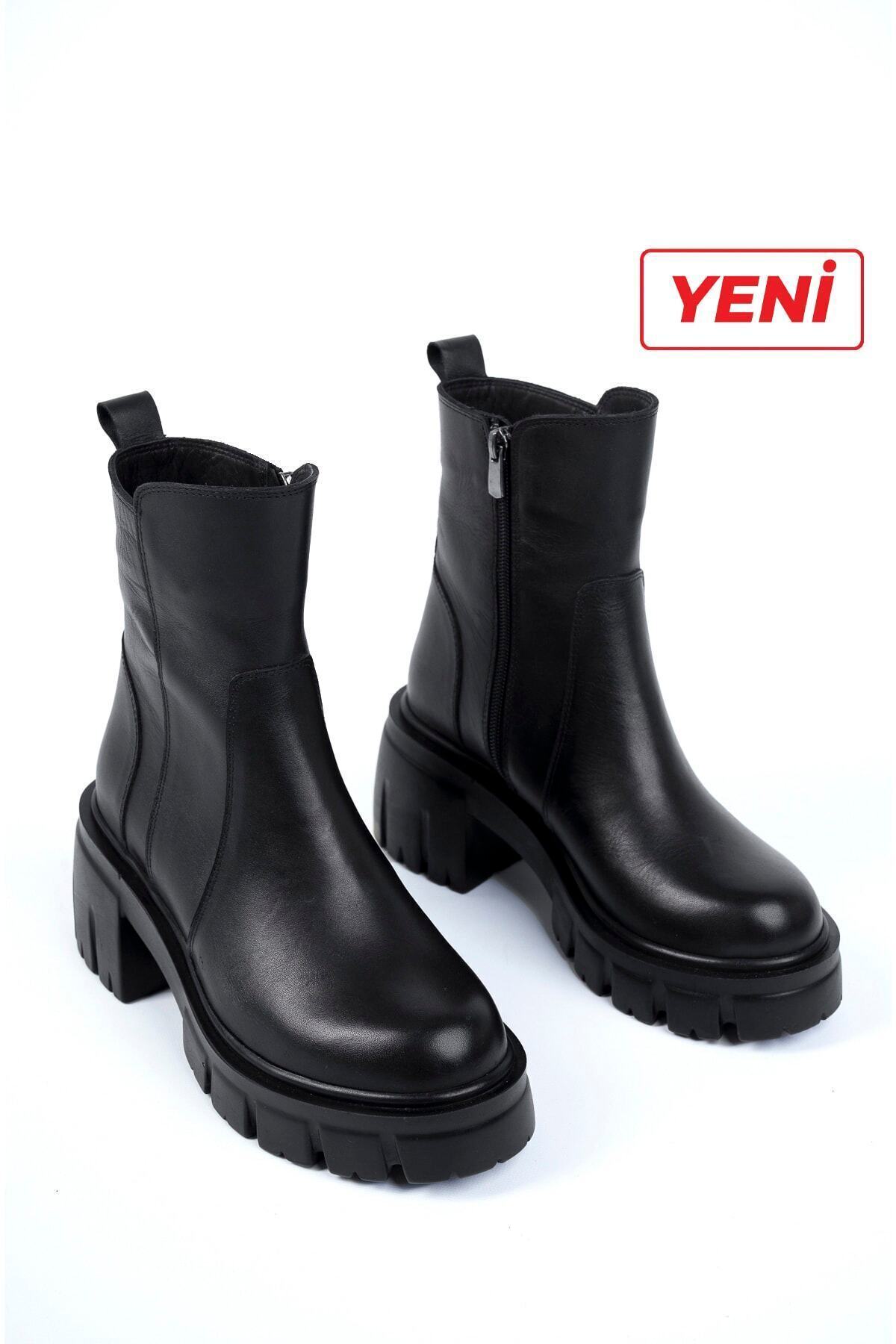 Kadın Hakiki Deri Kışlık Topuklu Fermuarlı Bot Kadın Hakiki Deri Kışlık Topuklu Fermuarlı Bot 24604F-D 41