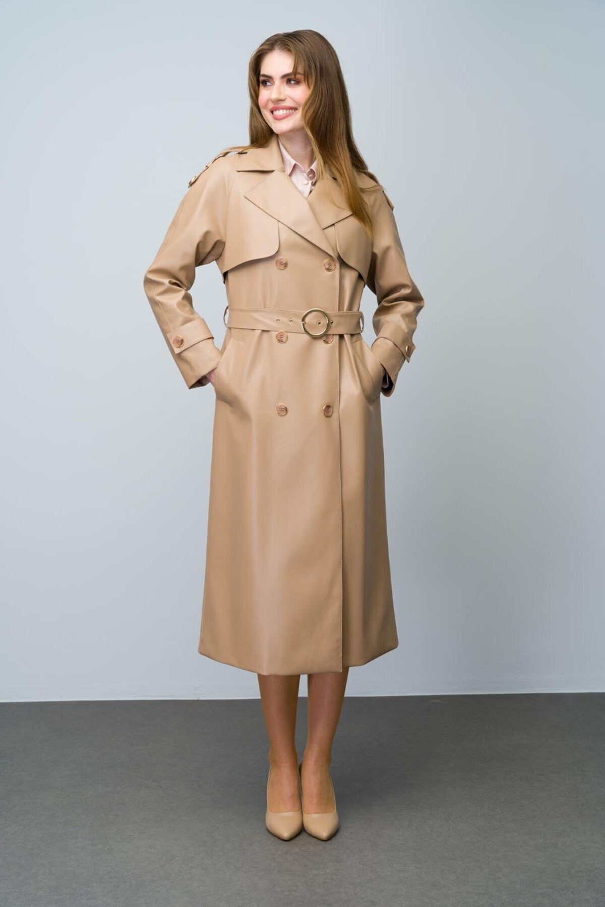 Apolet ve Pelerin Detaylı Reglan Kol Kruvaze Deri Trençkot KAMEL 6610 Apolet ve Pelerin Detaylı Reglan Kol Kruvaze Deri Trençkot KAMEL 6610 42