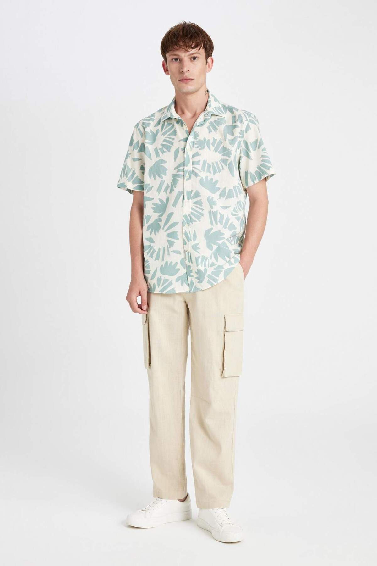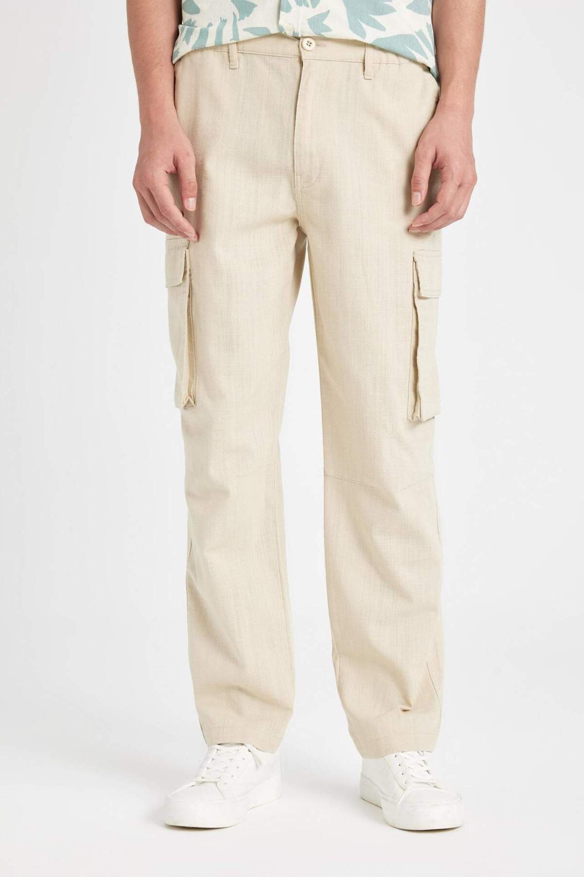 Wide Leg Bol Rahat Kesim Kargo Cepli Keten Görünümlü Yazlık Pantolon B9407AX24SM Wide Leg Bol Rahat Kesim Kargo Cepli Keten Görünümlü Yazlık Pantolon B9407AX24SM 30-32/32