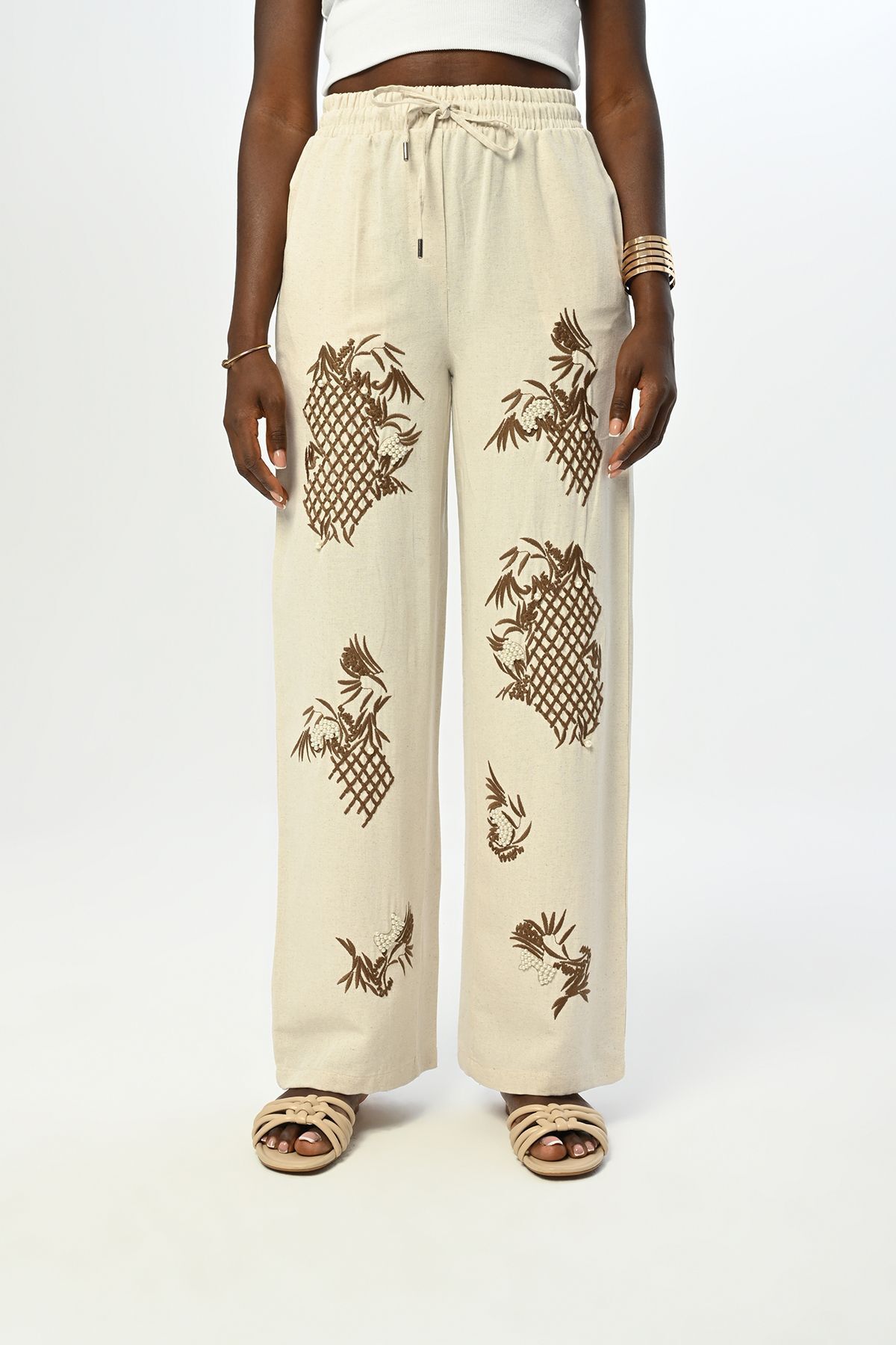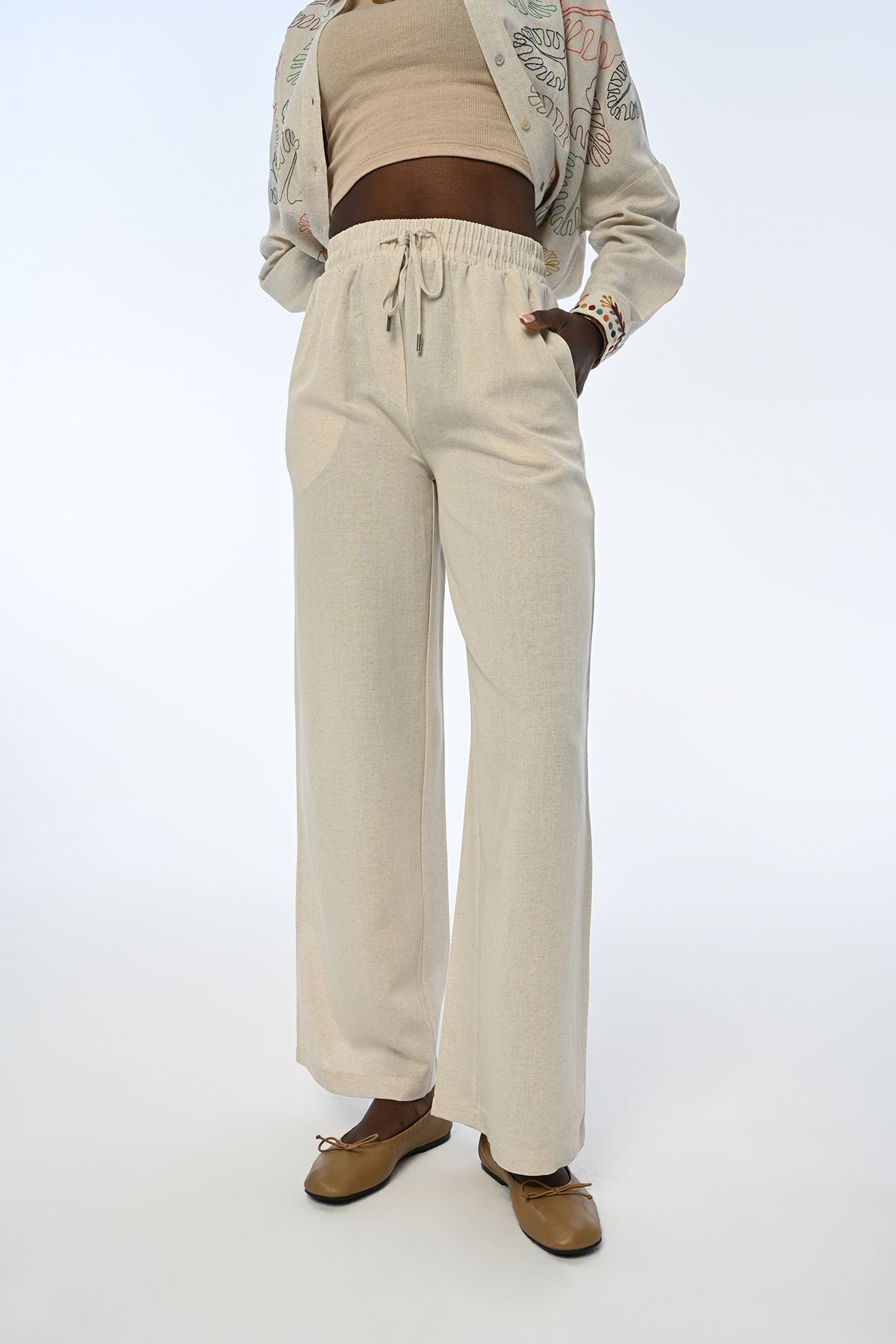 KADIN RAHAT KALIP BOL PAÇA BELİ LASTİKLİ TAŞ İŞLEMELİ NATUR PANTOLON KADIN RAHAT KALIP BOL PAÇA BELİ LASTİKLİ TAŞ İŞLEMELİ NATUR PANTOLON 45013 L