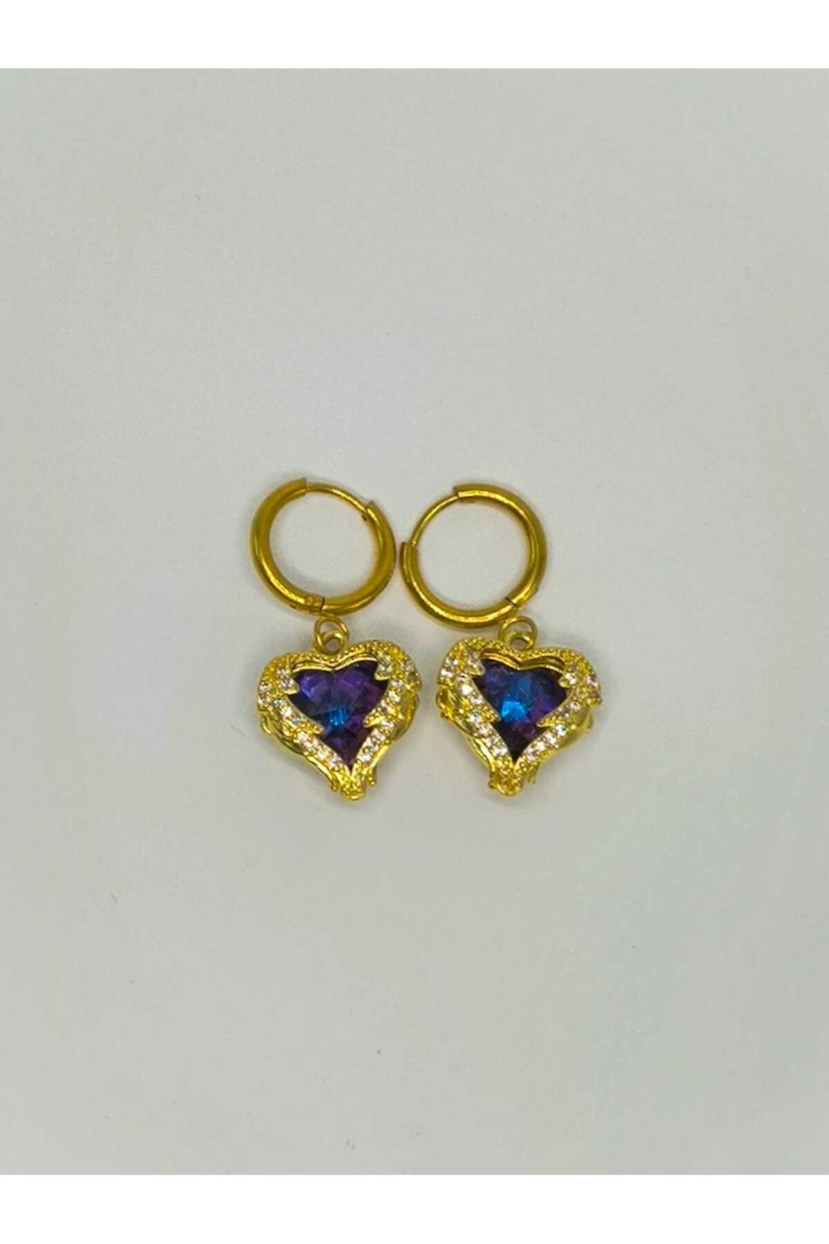 316L Çelik Gold Renk Mavi Kristal Taşlı Kalp Model Zirkon Taşlı Kadın Küpe 316L Çelik Gold Renk Mavi Kristal Taşlı Kalp Model Zirkon Taşlı Kadın Küpe aync 1
